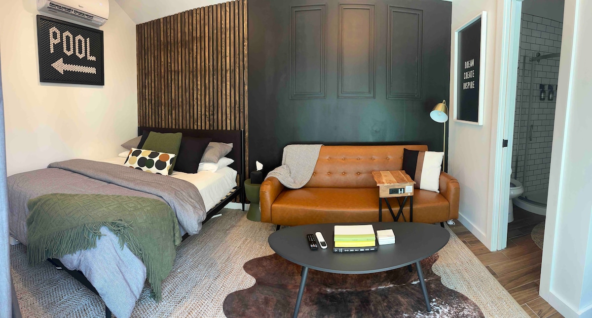 Welcome to the Pineapple Bungalow! This small, cozy space is perfect for those who want a touch of tiny house living. You'll be WOW'd at how easy it can feel when you're close to the hustle-and-bustle city life outside your door - but have everything right here inside this cute studio bungalow home. Affordable accommodations while maintaining high standards of cleanliness and comfortability. Pets are welcome, too! Bring your fur baby along for your adventures! (pets subject to house rules)
