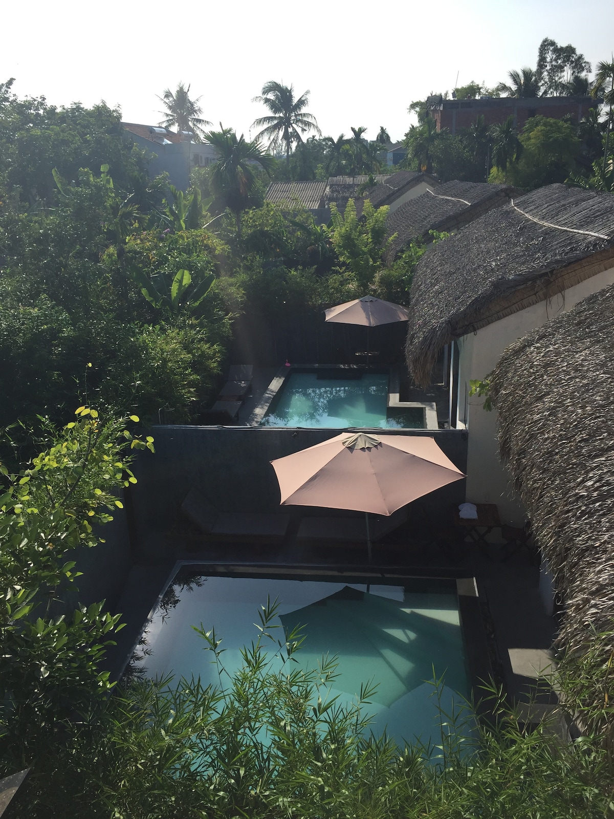 My house is located next to Thu Bon river. The house was built according to modern architecture while also being in harmony with nature. The house is divided into 2 areas (Area A and Area B), each area is structured like an independent house. Guests will be able to use the entire house when renting,1 bedroom, 1 living room, 1 kitchen, jacuzzi massage. Our house has a modern but simple design next to the beautiful Thu Bon river, not sophisticated but spacious and comfortable for a couple.
