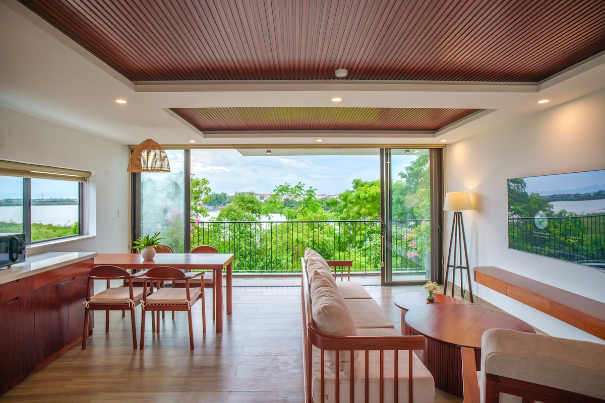 Wake up to river breezes and end your evenings watching lantern boats glide past your window. This stylish, light‑filled apartment sits right on the river and is just a 10‑minute walk (or 2‑minute drive) to Hoi An’s UNESCO‑listed Old Town—close enough to wander in for coffee, dining, and night markets, yet tucked away for peaceful rest. Enjoy a stylish experience at this centrally located place. Vibrant, local restaurants right outside your door for riverside culinary delights.