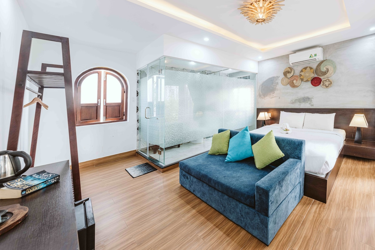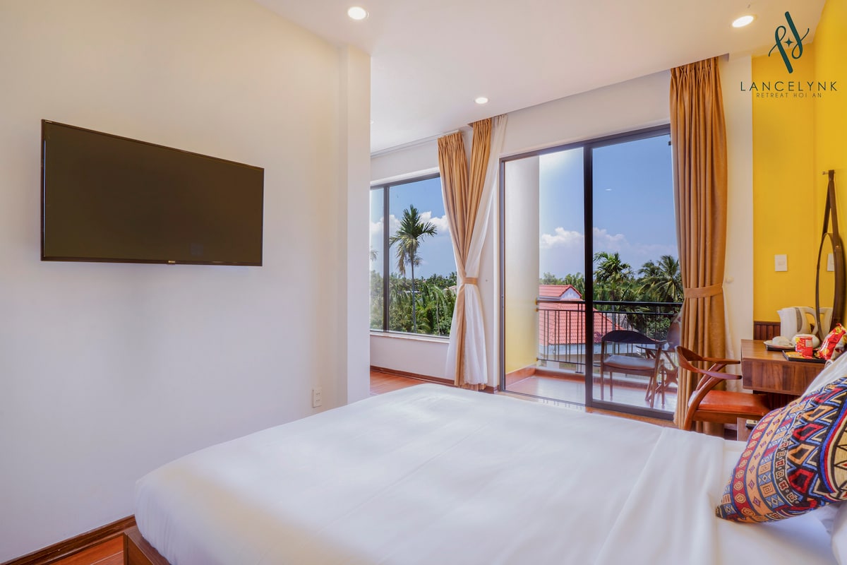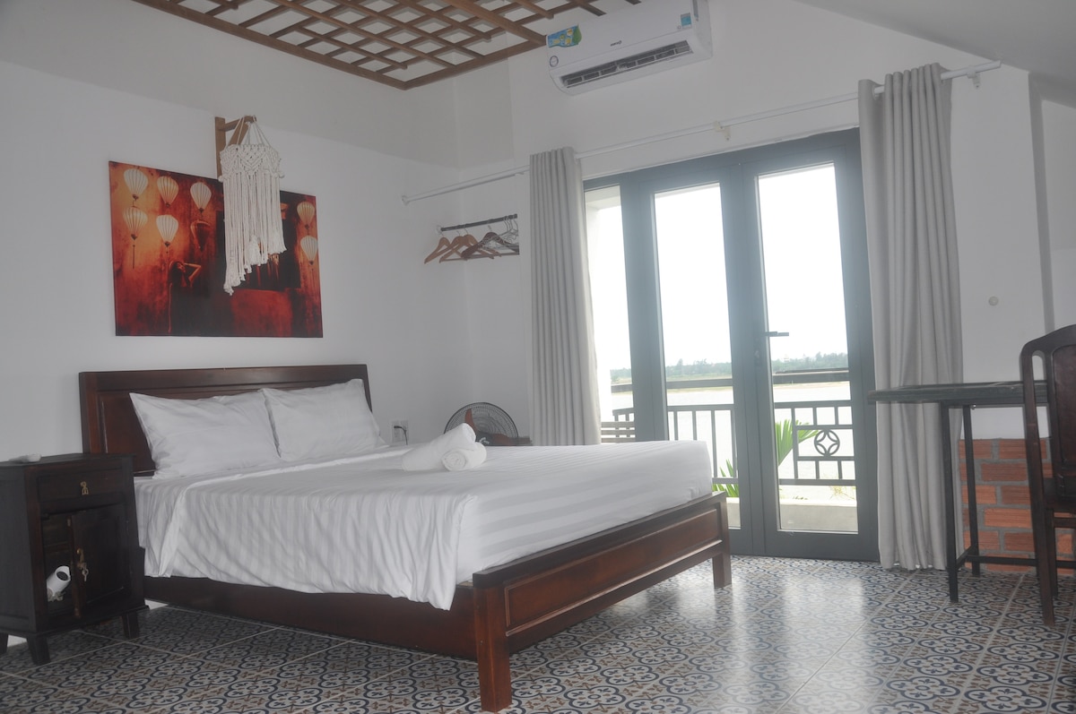 Experience peaceful riverside accommodation in Hoi An, just 2 km from the enchanting Hoi An Ancient Town. This room offers stunning river views and fast speed WiFi. The room is thoughtfully designed for your comfort, featuring a cozy high-quality mattress, air-conditioning, and a mini-fridge. The en-suite bathroom includes a shower, hairdryer, and fresh towels for your convenience. Whether you're here to explore the vibrant streets of Hoi An or simply relax by the gorgeous river view