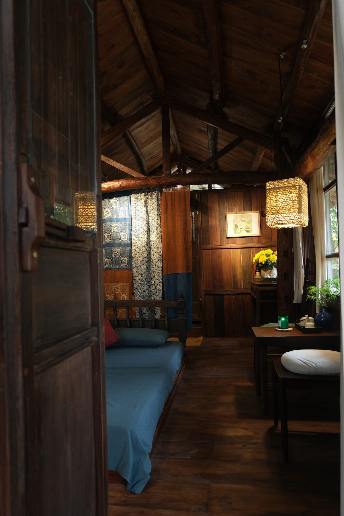 The Grass Room was once an old cattle shed, now transformed into a cozy wooden space by the river. With a small porch perfect for reading, yoga, or watching the sunrise, it offers a peaceful retreat. Separated from the main houses, the mornings here are quiet, with only birdsong and a gentle river breeze. A large door welcomes the soft morning light, creating a tranquil atmosphere. Enjoy a cup of tea, embrace nature’s rhythm, and savor the serenity in every moment.