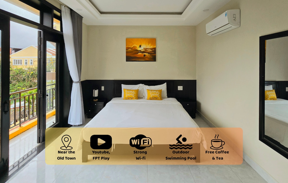Experience the magic of Hoi An's Old Town in our stunning 4-bedroom villa! Just 100m from the vibrant night market, enjoy river views, a spacious layout, and fantastic amenities including a pool table (bida) and fully equipped kitchen. Perfect for families or groups seeking a central and luxurious getaway. - 5 minute walking to Japanese Bridge. - 7 minute walking to Hoi An local market - 10 minute by bike to An Bang Beach - FREE BICYCLE