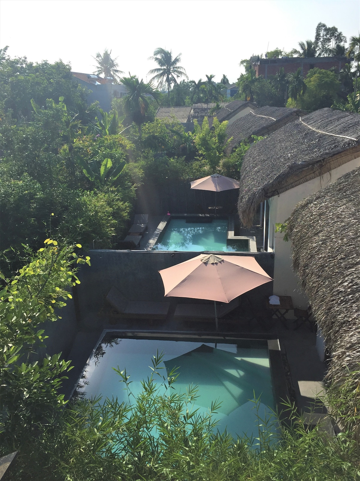 Private 4 bedroom Villa with stunning river and garden views, 20 metre swimming pool, superbly located on the river close to Hoi An ‘Ancient Town’ and the beaches of the East Sea. Breakfast, daily house- keeping, laundry service, and high speed Wifi is included in the rate! Red Bridge restaurant is next door.