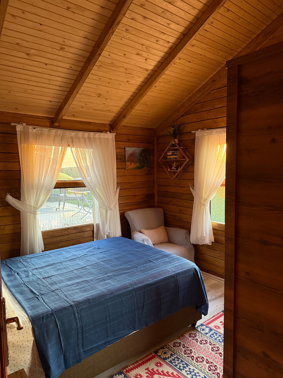 Çiftliğimizin içindeki yeni, konforlu ve manzaralı evlerimizde sıcak su, sınırsız Wifi, yerden ısıtma, tam donanımlı mutfak ve şömine mevcut. Evlerimiz 6 kişilik yatak kapasitesine sahip olmakla birlikte ortak alanları 4 kişi için idealdir. Gün içinde çiftlikteki eşekler, koyunlar ve kazlarla vakit geçirebilir, yoga iskelemizde yoga yapabilir ve kar mevsiminde kızaklarla kayabilirsiniz. Ayrıca çiftliğimizin bitişiğinden başlayan ormanın içinde pek çok yürüyüş rotası mevcut.