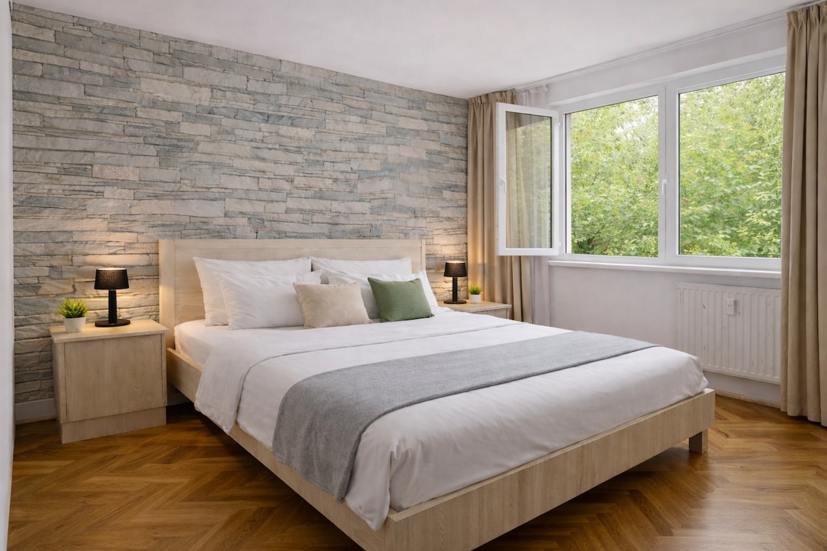 Comfort 14 is a stylish, well-kept apartment designed for easy everyday living. It’s a good fit for families, couples, and guests visiting for work or longer stays. The apartment offers hotel-grade mattresses, a modern walk-in shower, fast and reliable Wi-Fi, and dedicated desks with proper power outlets for working comfortably. You’ll also find a fully equipped kitchen, washing machine with drying rack, easy self check-in, and free street parking nearby.
