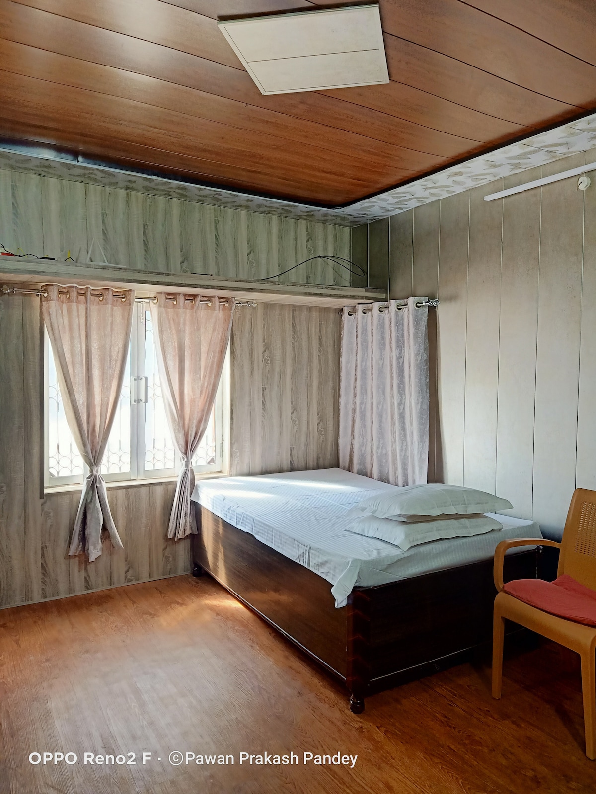 The homestay is located in a very peaceful location near simtola eco park. Its a two story traditional house. The kitchen, dining area, a queen size bed and bathroom is in the ground floor and a double bed is in the first. The bedroom, bathroom and kitchen have all the basic amenities. The house features beautiful view of sunrise and snow covered peaks in a distance. Located amidst the dense deodar jungle one can sit in the garden and enjoy a peaceful and relaxing time throughout the day.