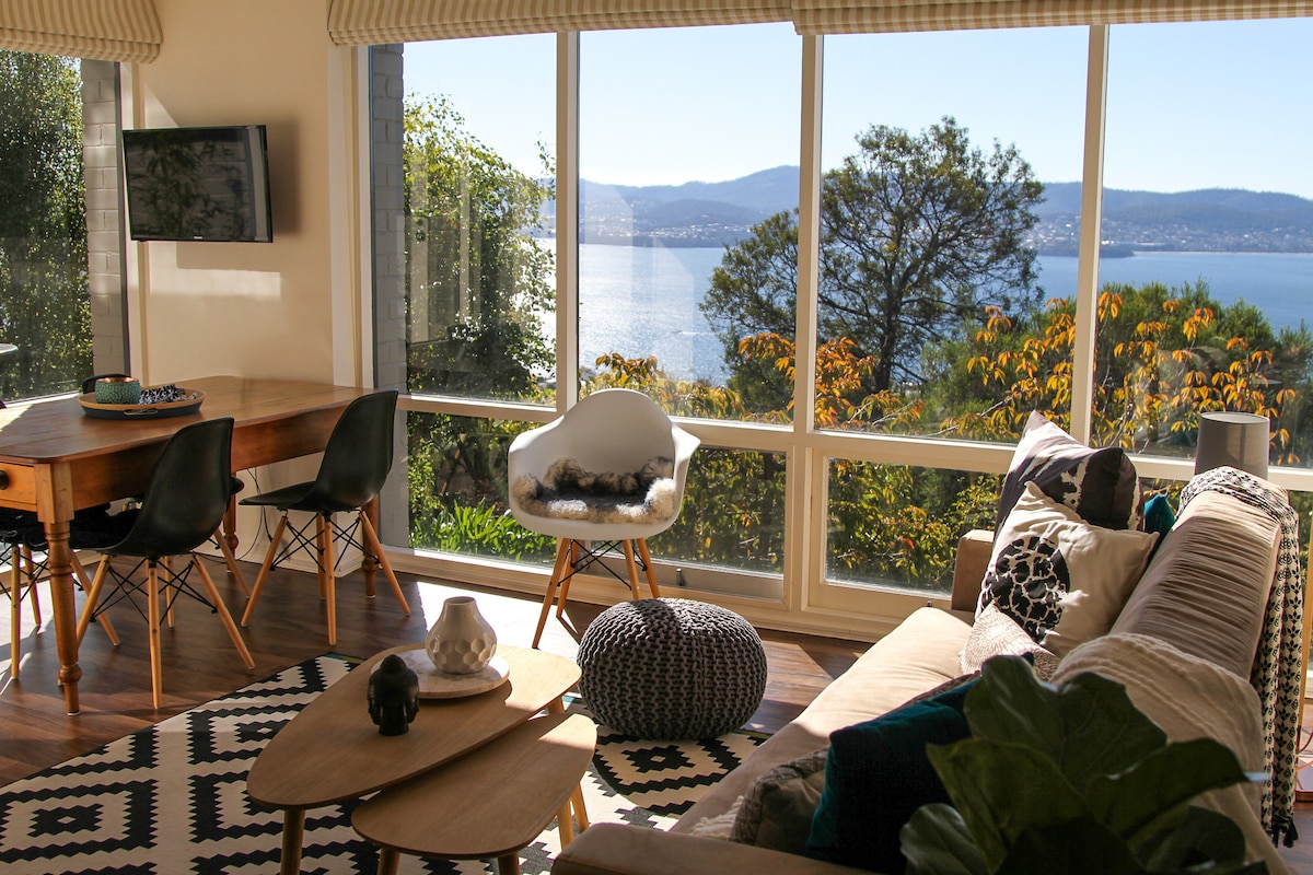 Spacious, comfortable, light & airy 1 bedroom apartment with an eclectic decor featuring modern and antique furniture. Large windows to take advantage of the amazing views and sun. Quiet and secluded but close to the action. Just 5 km from Hobart city centre and even closer to Battery Point and Salamanca Place. Only 1.5 km from the University of Tasmania. Ideal for couples or 3 people travelling together. Comfortable, stylish, warm, private accommodation with quality fit out and amenities.