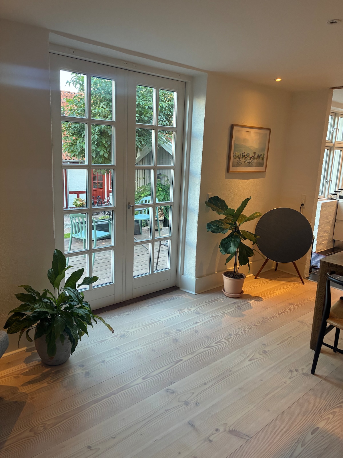 Enjoy a calm, centrally located stay in our recently fully remodeled 75 m² apartment. Ideal for solo travelers or couples exploring Odense. Highlights: - Large bedroom with king-size bed - Fully equipped kitchen - 75” Samsung Frame TV - Ample storage - Outdoor patio set - Cozy Danish hygge throughout - Optional queen air mattress - Keyless entry This is our personal home in Denmark, thoughtfully renovated, and we’re excited to share it with you.