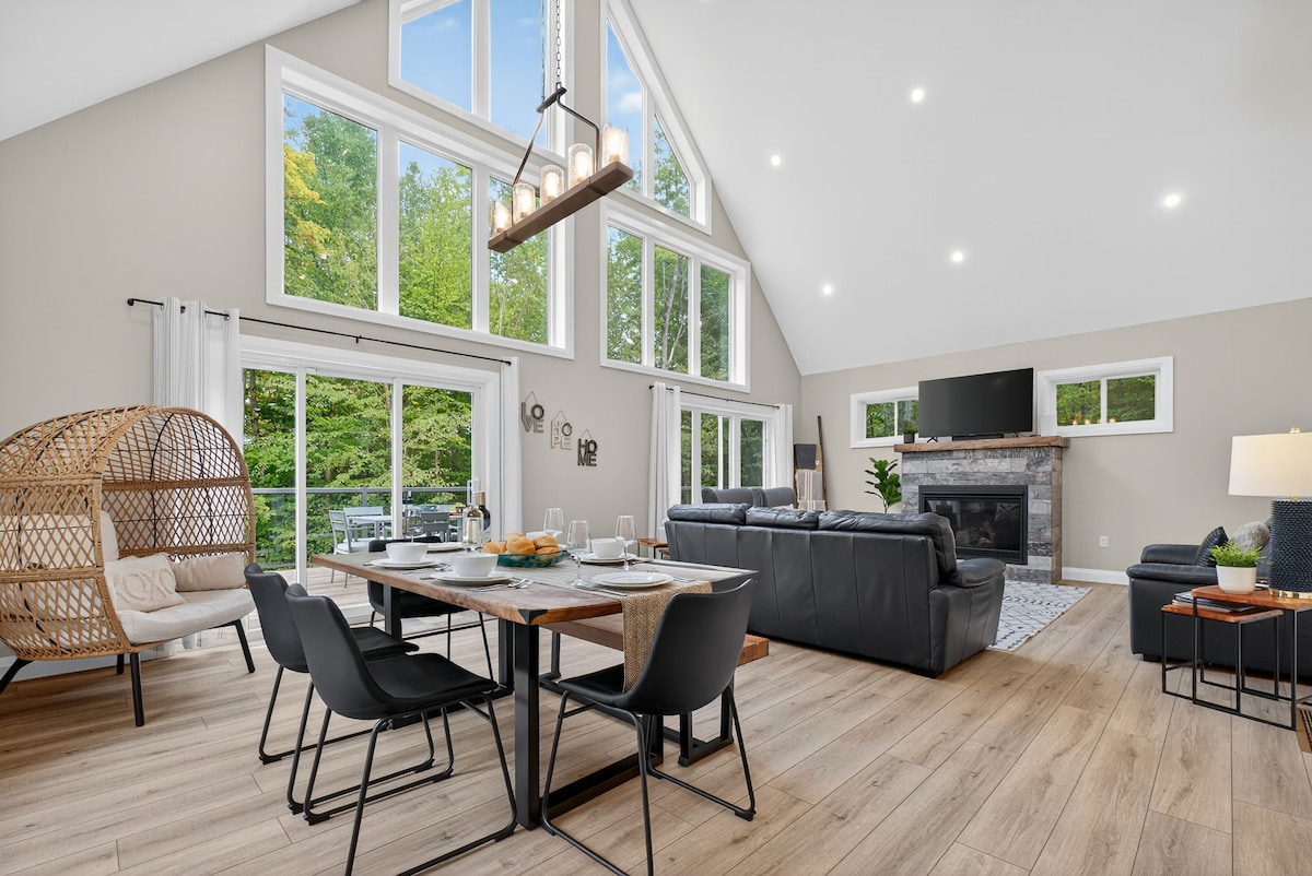 Escape to our secluded 3,200 sq ft modern A-frame cabin, a private forest retreat just 10 mins from Haliburton. Perfect for groups travelling with family or friends, this unique space features a 6-person hot tub, barrel sauna, game room, and fire pit. Enjoy stargazing with no city lights, offering the perfect blend of luxury and nature for your getaway.