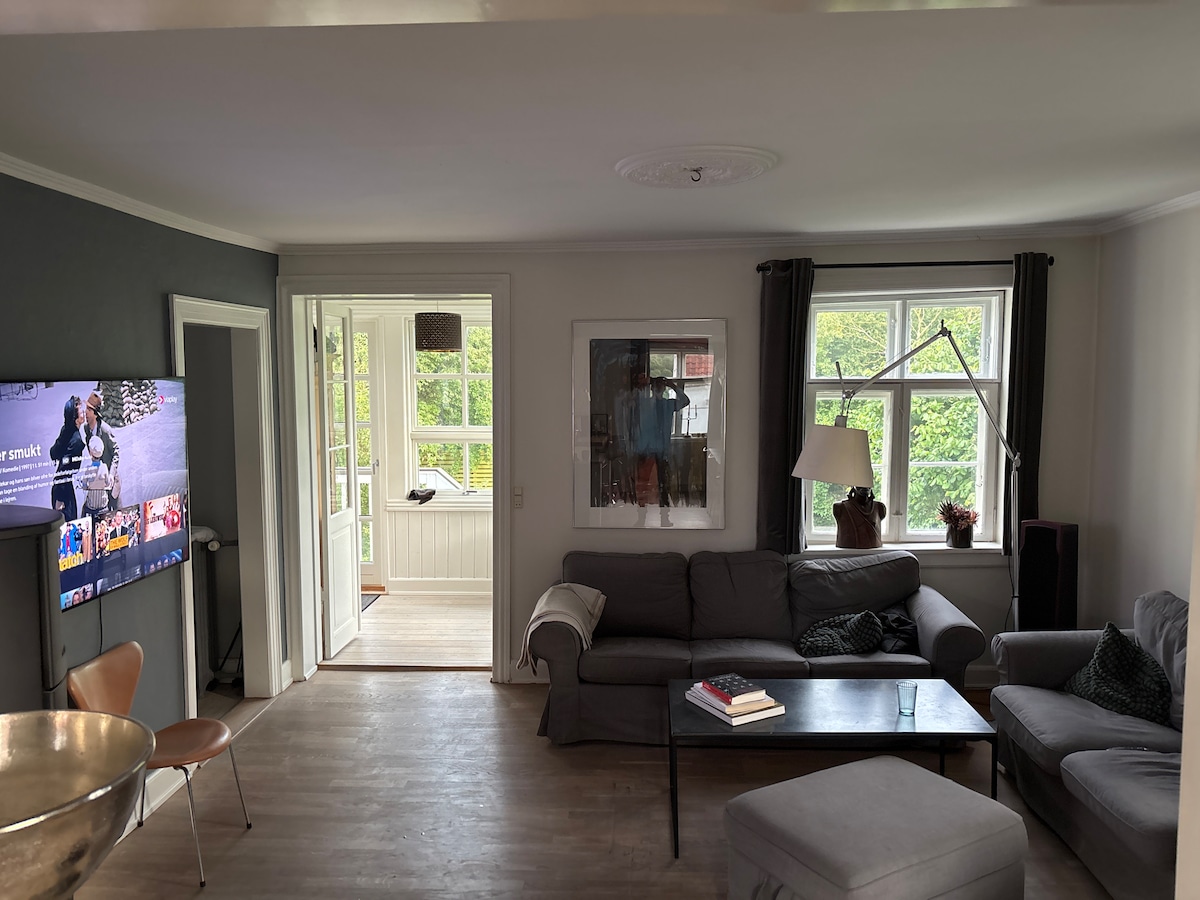 Ground floor of a 2-storey cozy villa, close to public transport and 10 min walk from the beach. Situated in a beautiful quiet area of Hellerup 6 km from Copenhagen centre. The S-train is 5 min walk away and will take you down town Copenhagen in 10 min. The apartment has a big terrace and a garden for the warm summer days/nights. 3 bedrooms with double beds, a big working space with a sofa that can be used as a single bed. Free parking on the street and a covered parking space in the driveway.