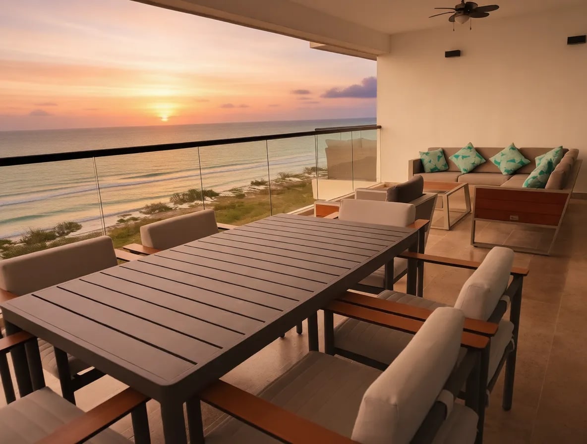 condominio con vista a la playa, contamos con todas las comodidades para pasar un fin de semana o vacaciones, mes o año inigualables, con 3 habitaciones, con aire acondicionado y ventilador, camas king y queen, hamacas, 2, 1/2 baños, estancias largas contaras con lavasecadora, podrás disfrutar de Gym, albercas, juegos para niños, sala de juntas, sala de tv, sala kids club, bar, lujo y diversion garantizada, toma un cafe al despertar admirando el color esmeralda del mar.
