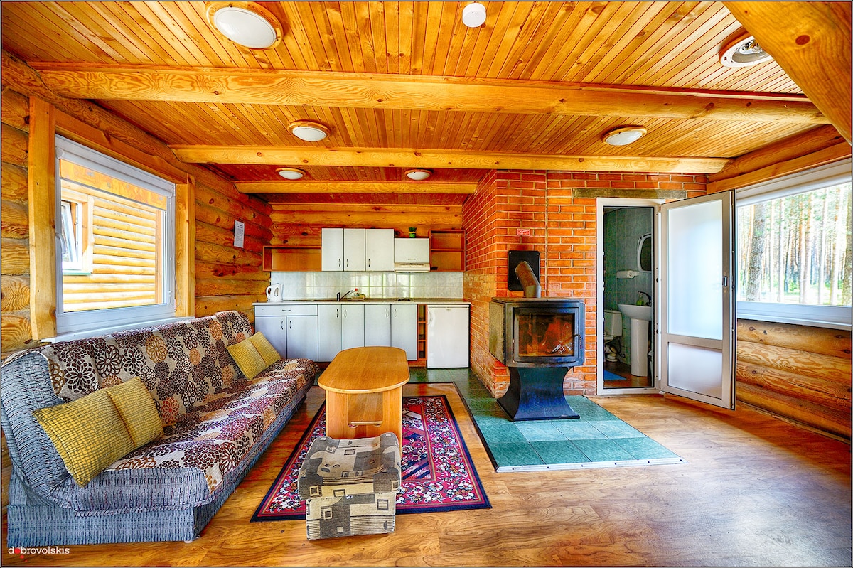 Ramus poilsis dviems,šeimai ar draugų grupei Lazdijų rajone, galimybė įsikurti grupei iki 8 asmenų. Namelyje yra virtuvėlė su mikrobangų krosnele, kaitlentė, virdulys puodai, indai, stalo įrankiai, šaldytuvas, arbata, kava bei cukrus. Galėsite viską puikiai pasigaminti taip lyg namuose! Namelyje visi patogumai: wc, dušas ir kriauklė. Vakaro malonumui galėsite pasikaitinti karštoje pirtyje arba pasimėgauti kubilo burbuliukais ant ežero kranto ( Pirtis- 50eurų vakarui Kubilas- 70 eurų vakarui)