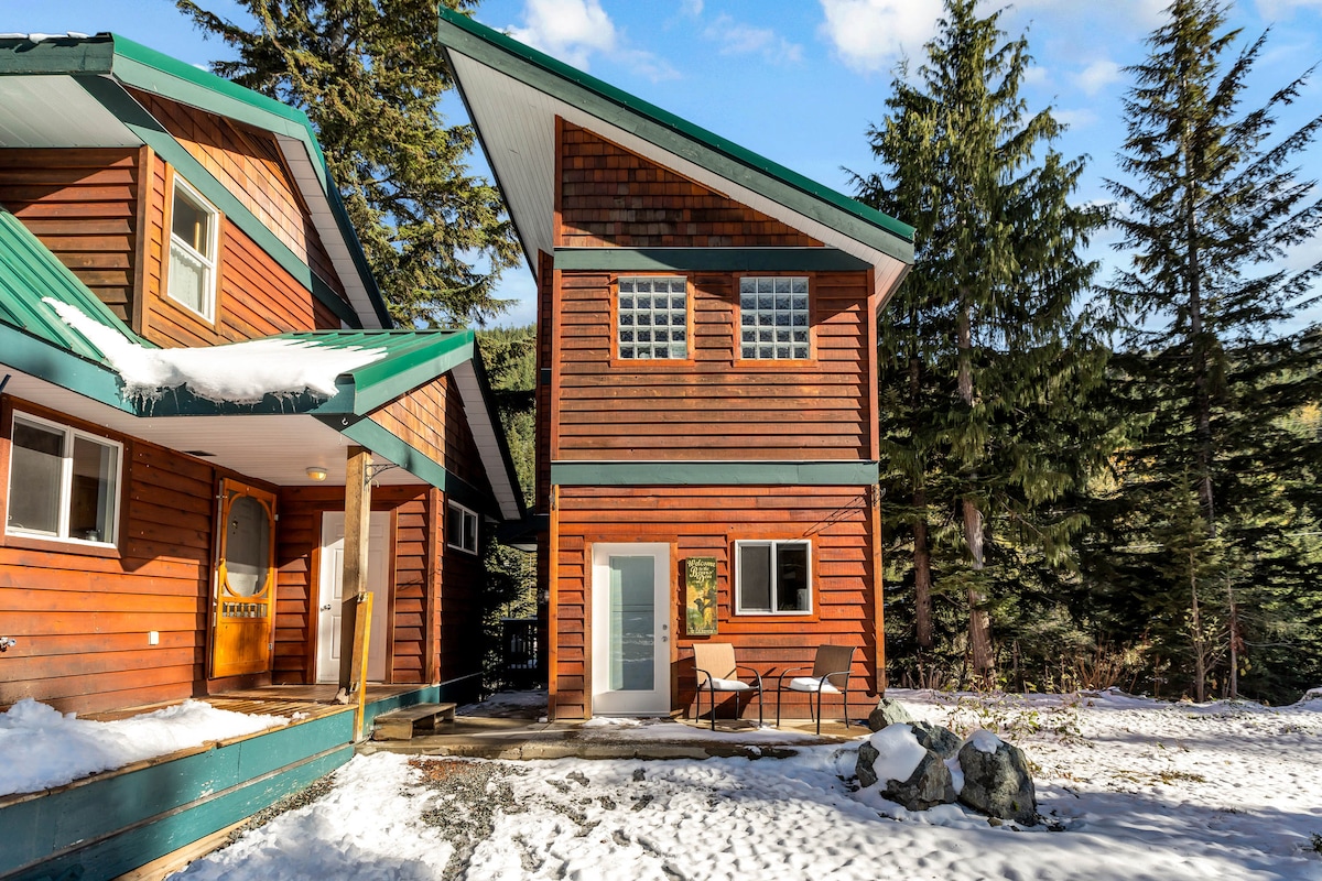 Beautiful cottage, one bedroom, an office room, laundry-in, full equipped kitchen and more, located on the banks of Silver Creek and a short drive to restaurants, stores, etc in Hope downtown. It is just 45 minutes to the great recreation area of Manning Park, with lots of outdoor activities. When at the cabin, enjoy the sights and the varied flora and fauna. Relax on the deck and enjoy your stay in the Forest. 1 pet fee 90$x stay