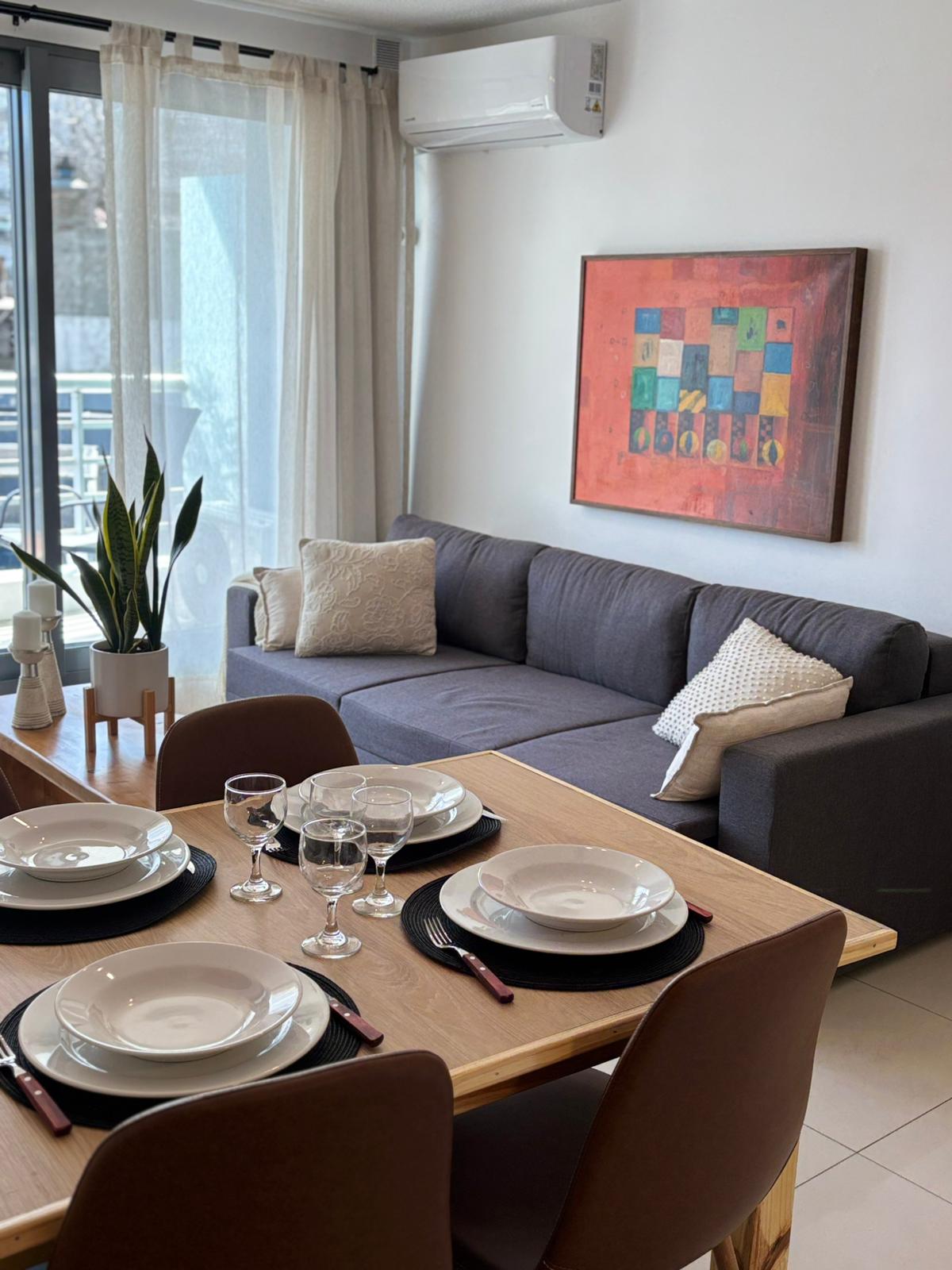 Apartamento 1 dormitorio para 2 personas con terraza y WiFi fibra óptica. Zona tranquila a 3 cuadras de la playa, cerca de restaurantes, servicios y transporte público. Living comedor con cocina equipada + espacio de trabajo con 2 escritorios. Luminoso y cómodo para estadías cortas o teletrabajo. Baño completo. • Estacionamiento gratis en la calle • A 30 min del aeropuerto • Buena conexión de transporte Condiciones: No fiestas ·Si visitas autorizadas · No mascotas
