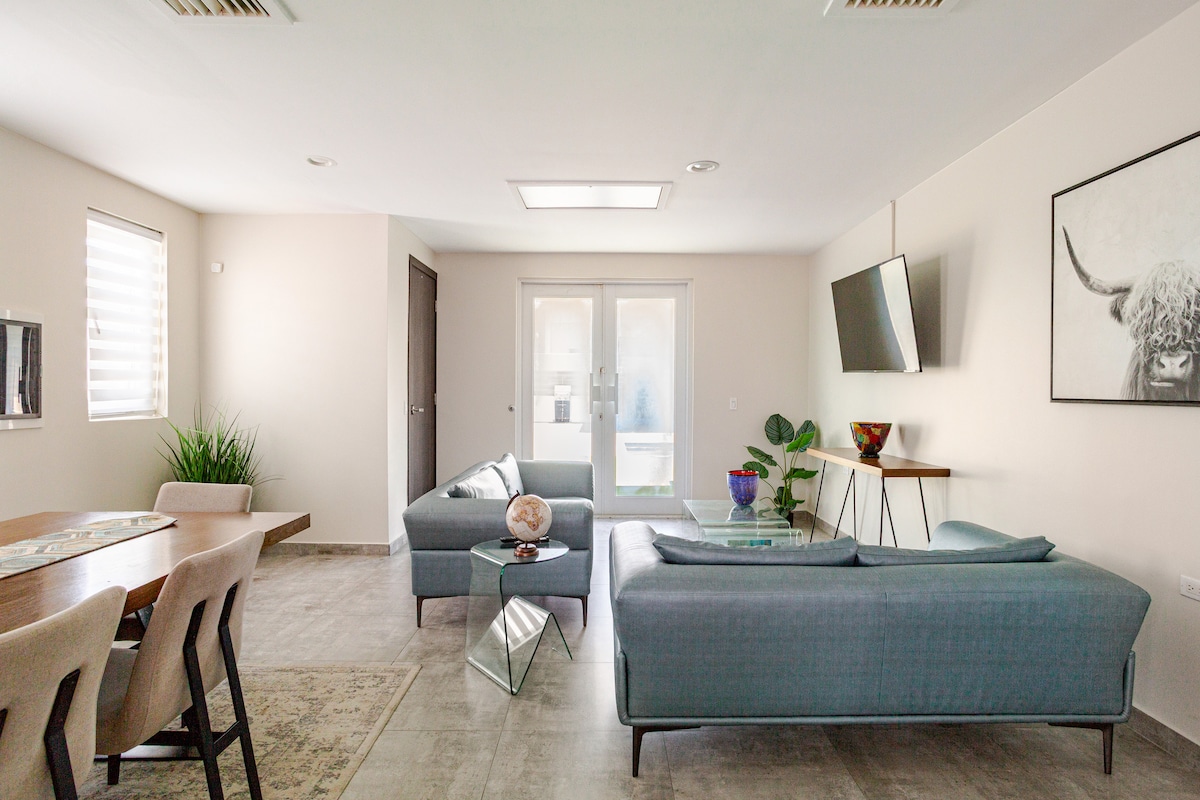 Traveling with a group of family and friends? Consider booking our charming 3-bedroom, 2-bathroom villa, perfect for accommodating up to 6 guests. Spread out comfortably before coming together in the spacious pool yard to create unforgettable memories, all just 5 minutes away from the world-famous Eagle and Palm Beaches. ✔ 3 Comfortable BRs ✔ Open Design Living ✔ Full Kitchen ✔ Swimming Pool ✔ Patio (Lounges, Dining, BBQ) ✔ High-Speed Wi-Fi ✔ Smart TVs ✔ Free Parking Learn more below!