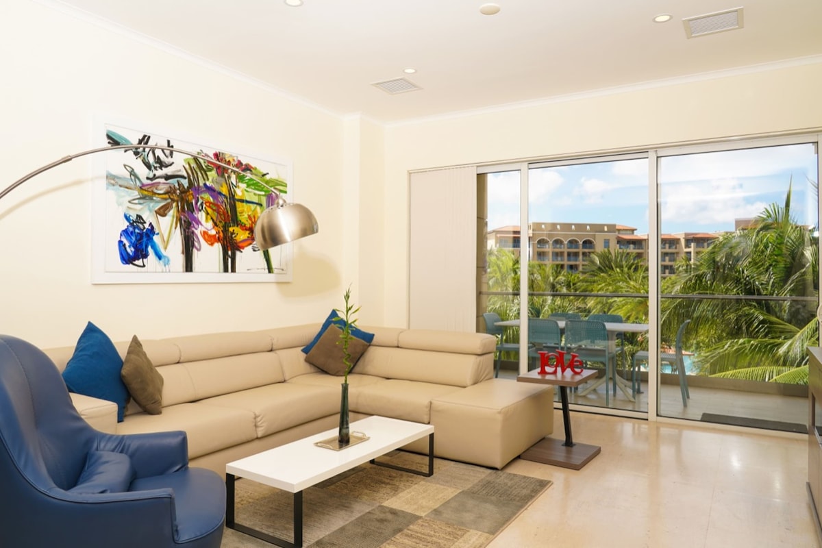 Located on the 4th floor of Tides Building- Azure Beach Residences with a Spectacular and Relaxing view to Palm beach and Eagle Beach. Which is rated in the top 10 best beaches in the entire Caribbean, unmatched in the Aruba. You will just a few steps from the white sand and the crystalline water, some of the amenities are two swimming pools, jacuzzi, gym, restaurant, social house and more. Perfect for couples. Maximum of 3 guests. Check our discounts for long stays.