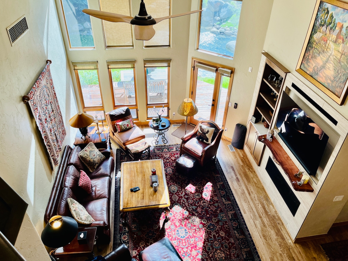 Gore Creek 旁阳光明媚的房屋,带热水浴缸