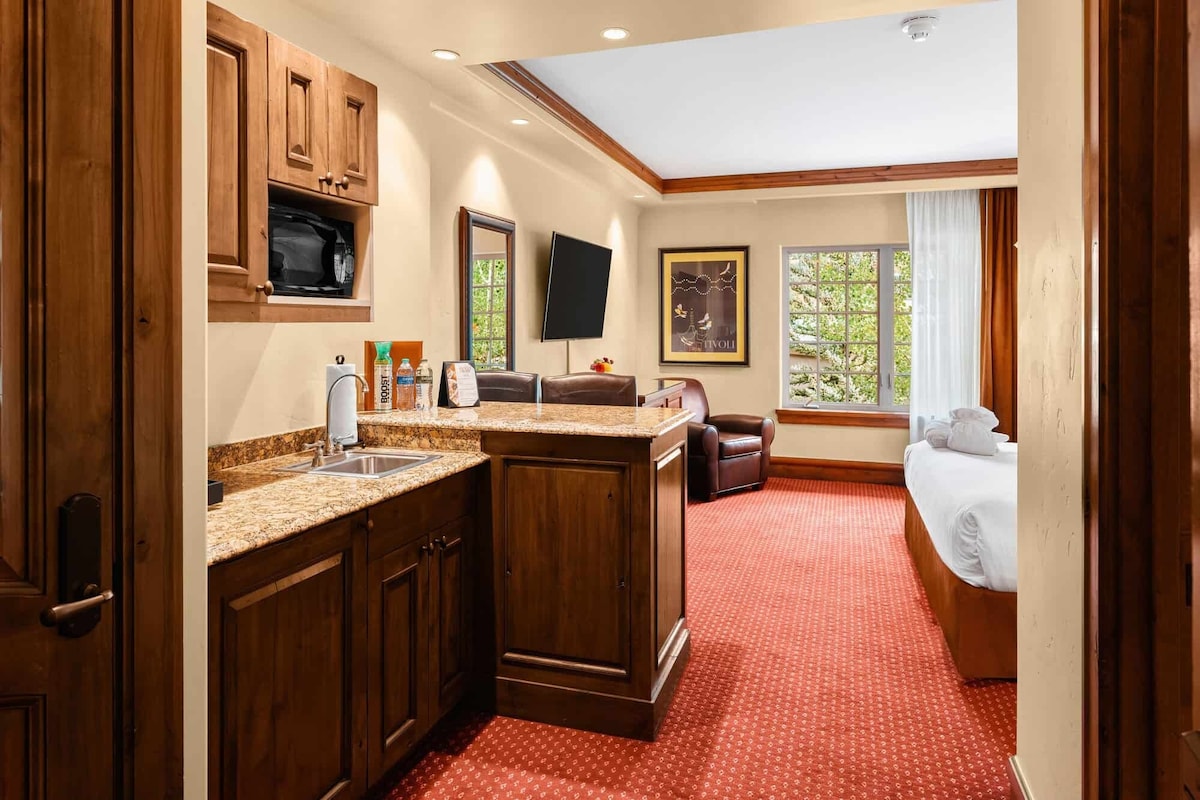 Tucked in the heart of Avon near Beaver Creek, this upscale mountain retreat offers spacious condo-style suites with full kitchens, fireplaces and private balconies. Guests enjoy ski-season convenience, year-round outdoor adventure and easy access to dining and shops. Relax after a day on the slopes with modern comforts and alpine charm. Valet parking is available for $45/night. Perfect for couples or families seeking comfort, location, and a refined mountain getaway in every season.
