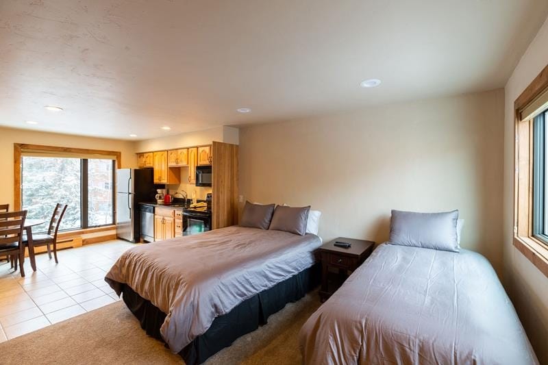 Studio Condo THE POOL AND HOT TUB WILL BE CLOSED FOR THE SUMMER 2025 AND WINTER SEASON FOR RENOVATION. Breakaway West is Vail's best value! Located 1.5 miles to Vail Village and ski lifts via Vail's free bus system that runs every 20-30 minutes (or a 10-minute walk to Lionshead in street shoes). free WIFI; free uncovered parking. This studio suite features 400 square feet of living space; one queen and one twin bed; full kitchen; in-unit washer/dryer.