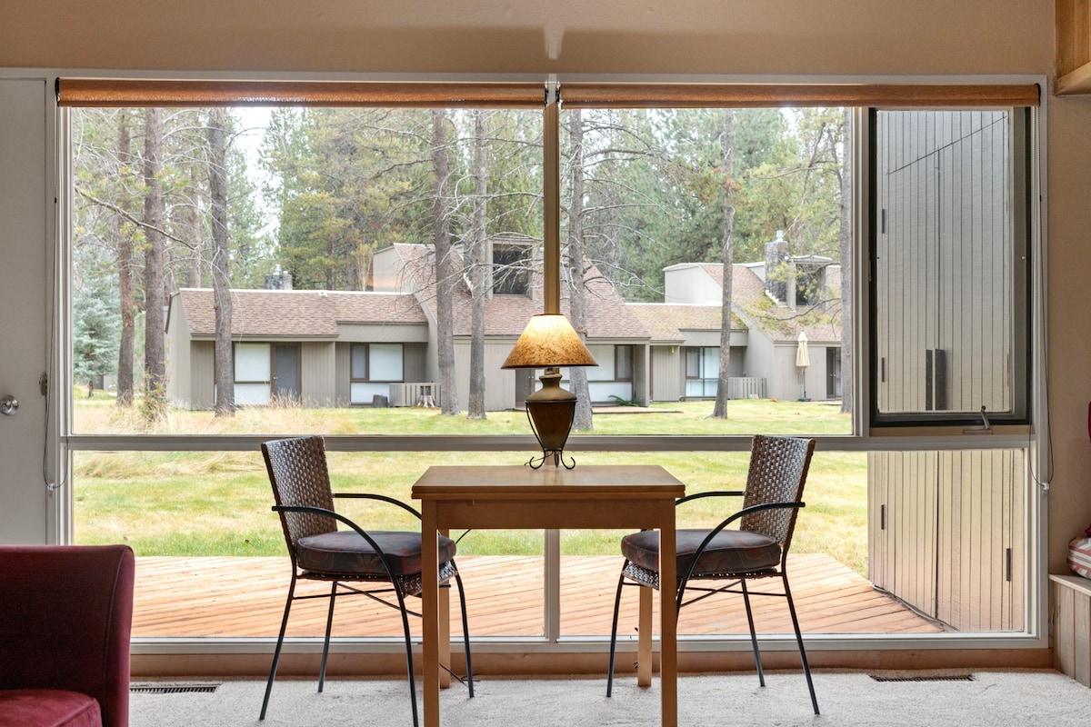 West Ridge Eagle Crest Creekside Townhome near Lakeside sports center (sport court, pickleball courts, gym, pool, hot tub and kids splash park). Kid and Dog friendly. Fully furnished and stocked - includes coffee. Sleeps up to 6 (master -queen, 2nd bedroom queen and sofa bed queen) Equipped with A/C for hot summer days, fireplace and digital thermostat for cold days. Lockable storage for bikes-skis-snowboards etc. Easy access to Bend, Sisters, Smith Rock, Hoodoo, Mt. Bachelor and more.