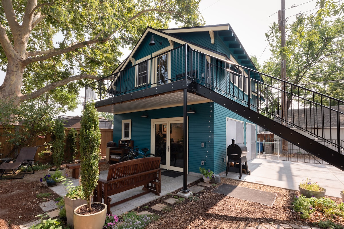 Treehouse Sanctuary is a hand-built guest space near downtown Boise. This light-filled 480 square ft upstairs studio boasts Idaho art, heated wood floors, farmhouse sink, gas stove, antique desk, firm but soft queen bed, record player, Bluetooth speakers, comfy reclining chair, clawfoot tub, and WiFi. No TV! Free on-street parking. Raised deck overlooks garden. Hot tub. Stairs to access. No pets. Owner lives in separate main home. LGBTQ welcome! Space resonates with peaceful, healing energy.