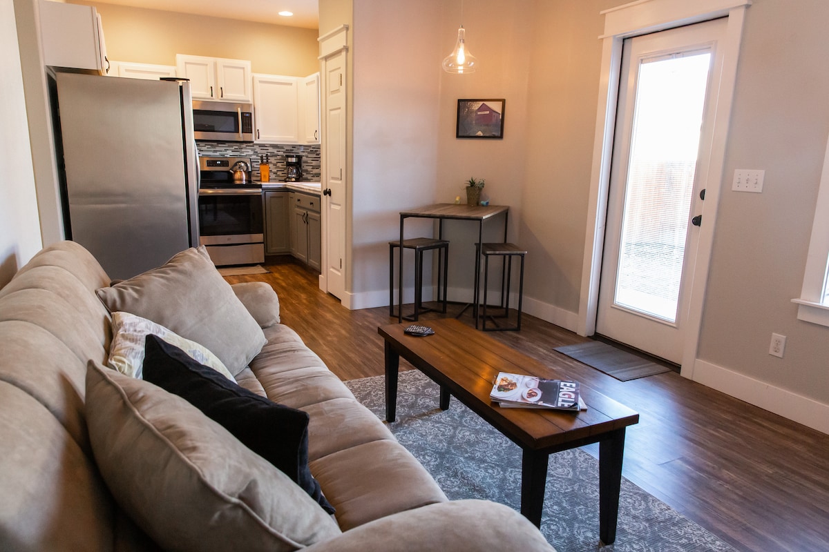 Amazing fully furnished executive suite ready for you to make yourself at home. This stylish 1 bed/1 ba is attached but private from our main home. It has its own entrance, HVAC, laundry, backyard, fully updated kitchen, super cozy bed, sofa bed, and more. Whether you're on vacation, touring the area, or on a business trip... this place is for you. Cozy up next to the fireplace, read a book, watch a movie, or play a game; you'll be relaxed and rejuvenated after staying at the Eagle's Nest.
