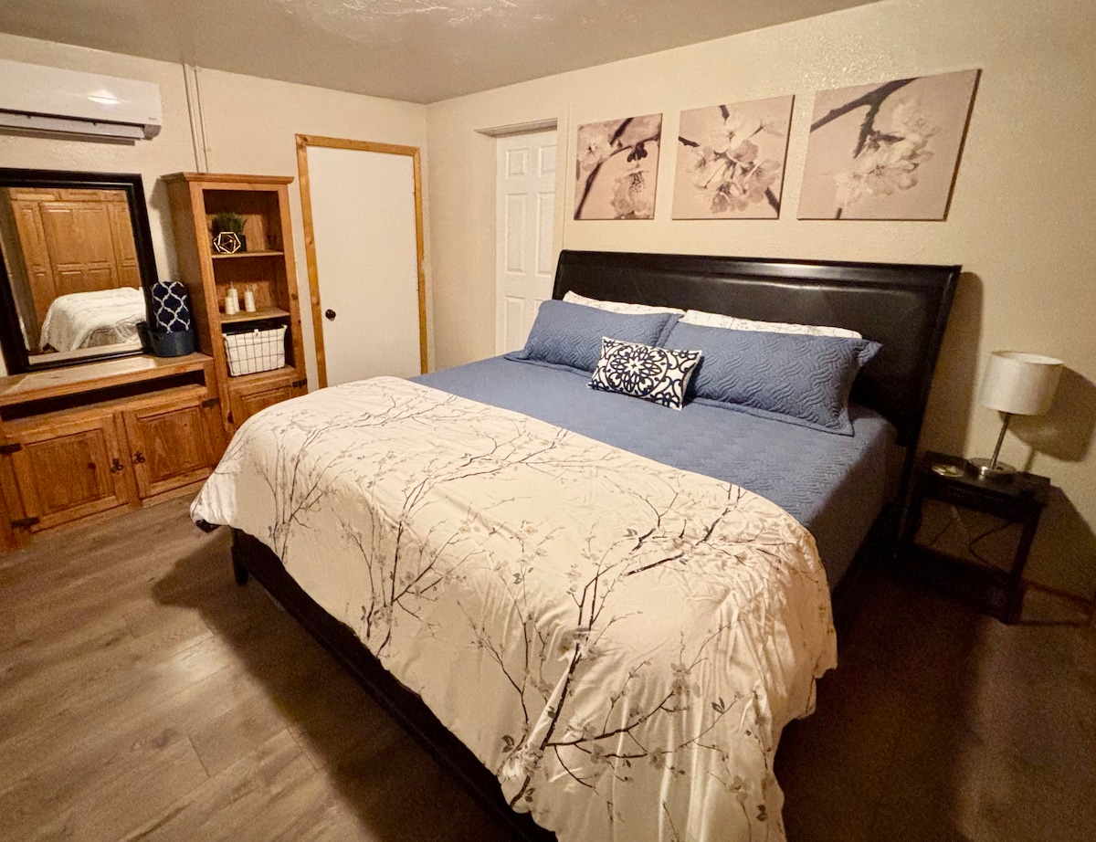 Amazing fully furnished executive suite ready for you to make yourself at home. This stylish 1 bed/1 ba is attached but private from our main home. It has its own entrance, HVAC, laundry, backyard, fully updated kitchen, super cozy bed, sofa bed, and more. Whether you're on vacation, touring the area, or on a business trip... this place is for you. Cozy up next to the fireplace, read a book, watch a movie, or play a game; you'll be relaxed and rejuvenated after staying at the Eagle's Nest.