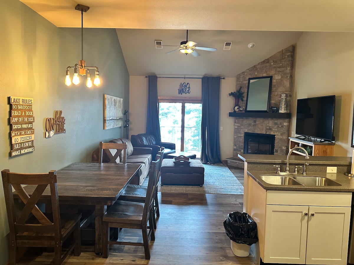 Enjoy a peaceful lake-view retreat in this 1350 sq ft 1 bedroom with loft and 1 bath condo. Featuring a fully equipped kitchen, cozy living room with gas fireplace, and a balcony overlooking the lake. Unwind in the king-size bed or queen loft, and take advantage of modern amenities like a dishwasher, washer/dryer, and Wi-Fi. Ideal for a relaxing getaway.