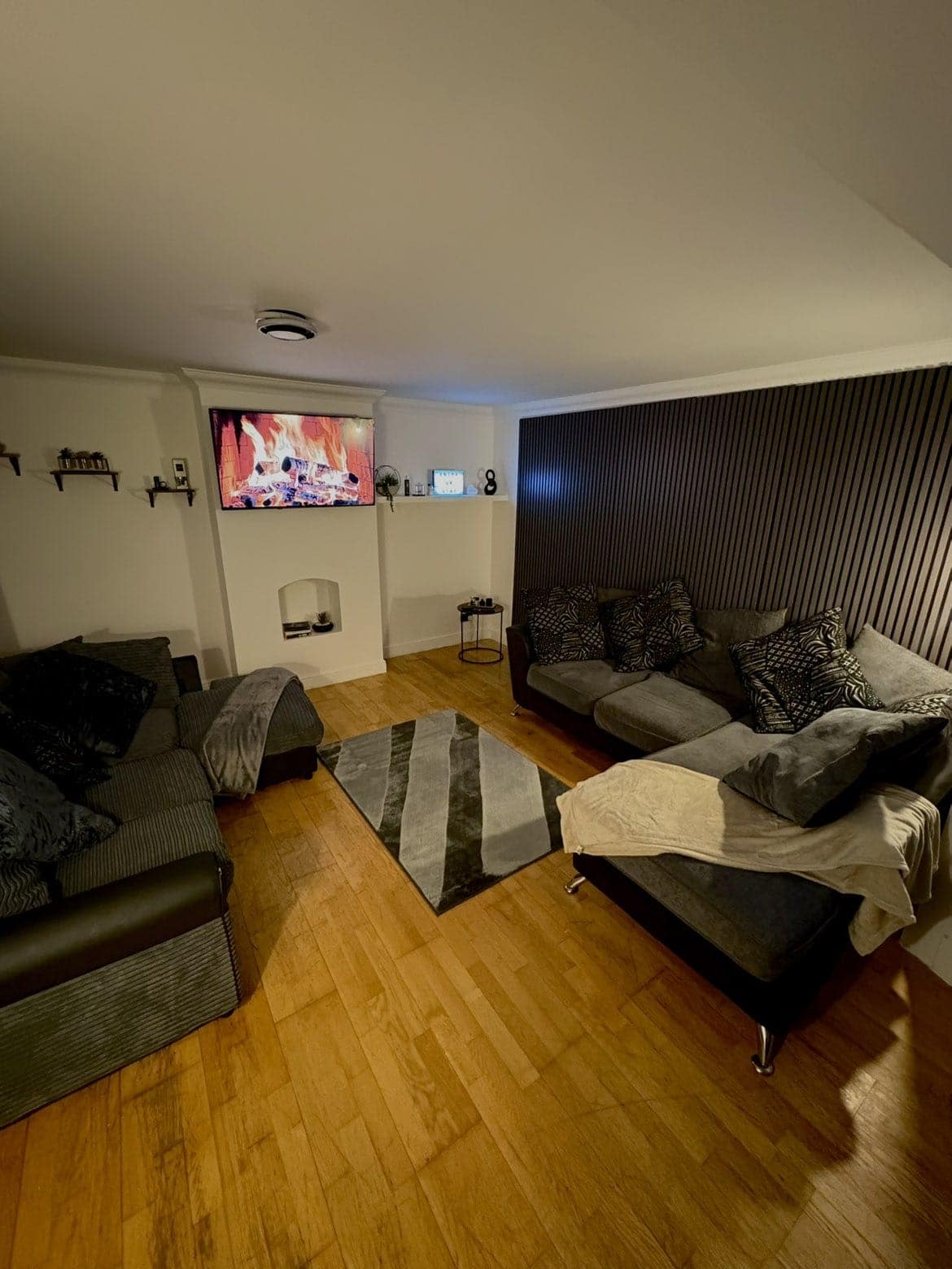 Self check-in with the whole apartment to yourself means you can relax and feel calm & cosy. Newly renovated to a high standard with a luxurious bathroom installed for you to enjoy! A clean & minimalist style kitchen. Soft carpets with electric recliner sofa in the lounge area! Includes access to WiFi & use of an Amazon fire stick so that you can catch up on your favourite movies & shows on Netflix! Free on site parking included with a great view of Hamilton Upper flat *stairs upon entry*