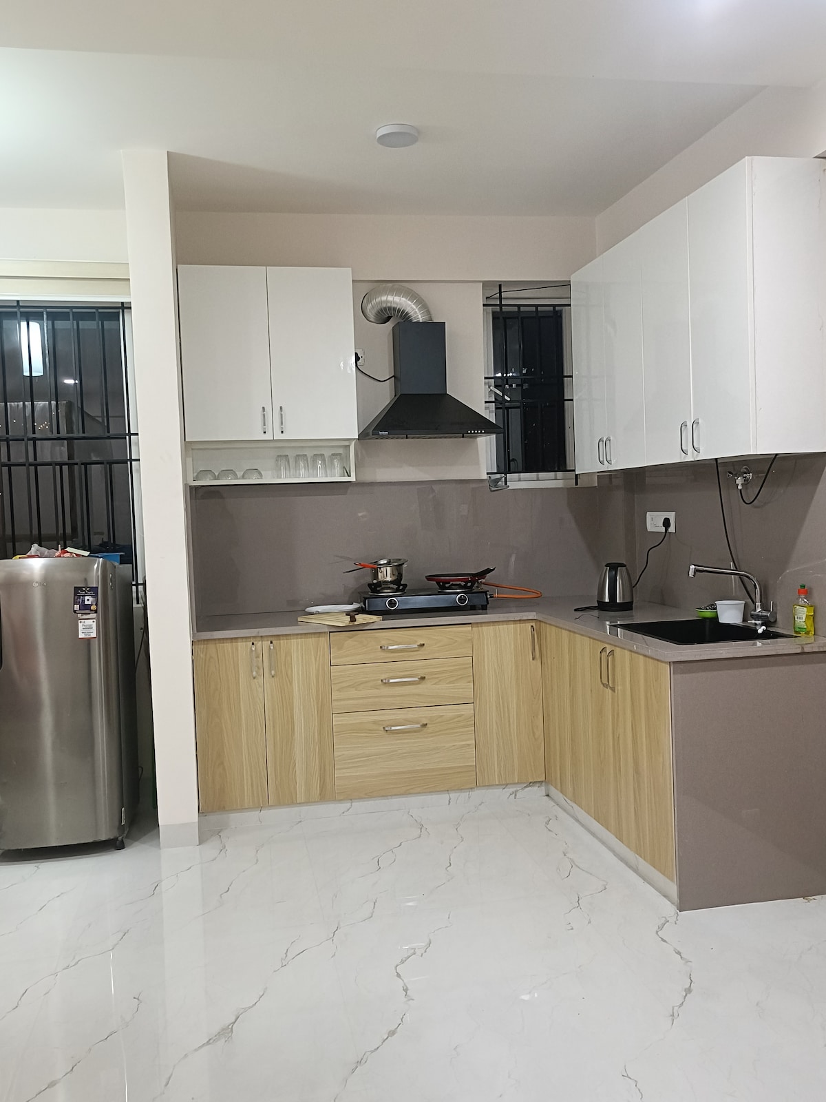 This Airbnb is in one of Bangalore's most desirable areas, Lavelle Road. This spacious & elegant studio unit is 450 sqft and is on the 2nd floor. The building has a lift. Cars can easily be parked in the basement. Guests can access the common spaces and the terrace of the building which has a great view of the Bangalore skyline. Guests can also order groceries, food, etc. on Zepto, Swiggy, Instamart and it will be delivered right to the doorstep.