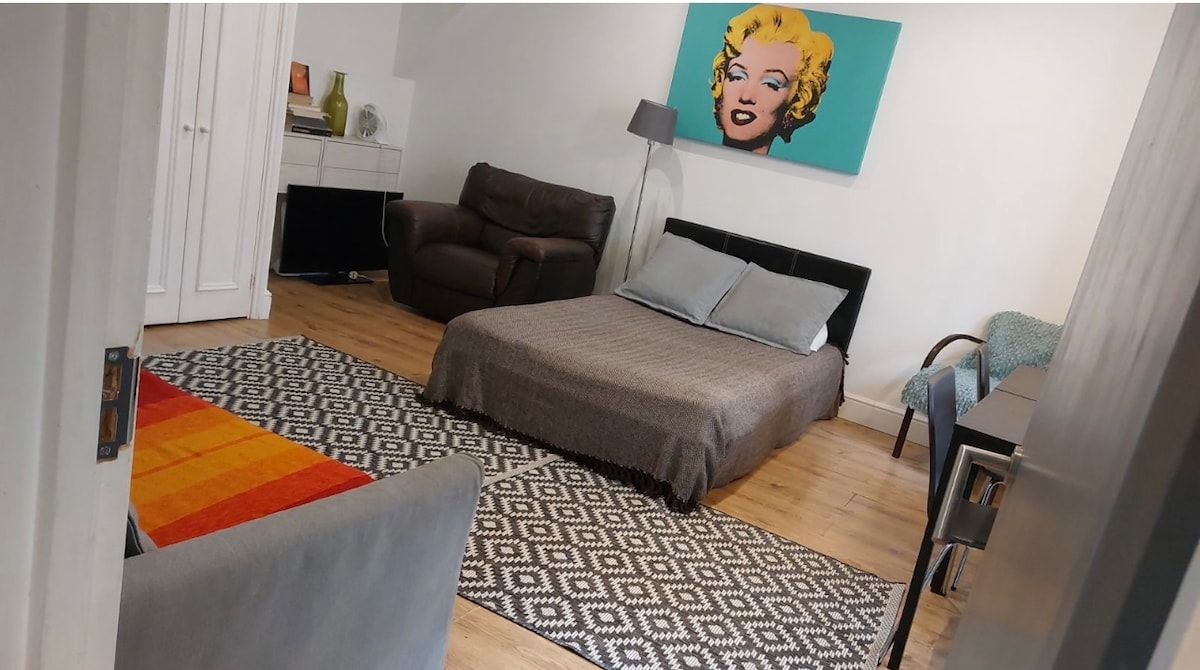 This property is TOTALLY PRIVATE including a kitchen & Bathroom. There are no shared spaces. The property can sleep 4. There is a 55-inch TV. The property has a large kitchen with large fridge and washing machine. The bathroom has a bath tub & a shower. The location is amazing & close to Earls Court Station and West Brompton with an overground line. You are very close to the famous kings Road and airport access is extremely easy. Opposite there is a convenience store & pizza place.