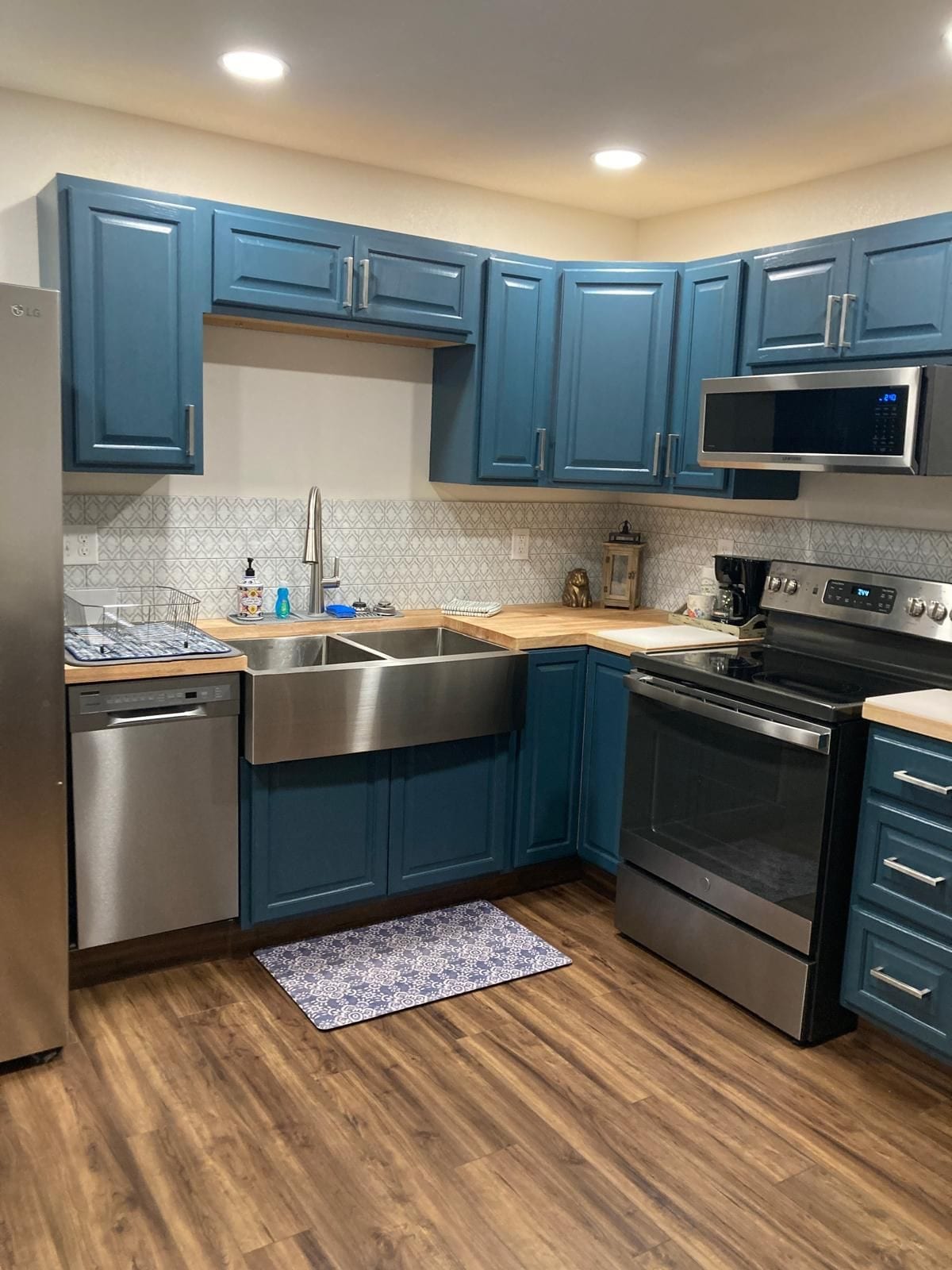 **PRIVATE GUEST STUDIO** Now accepting longterm up to 13 week stays. Contact for details. Newly remodeled Private 1 bedroom mother-in-law studio with bathroom and kitchenette (no oven), 450 sqft suite located downstairs INSIDE my split level home located in a residential neighborhood. Entryway and hall are only shared space. Laundry for longterm guests only. Comfortably fits 2 adults. King bed converts to 2 twin XL beds. One dog OK. Please notify in advance.