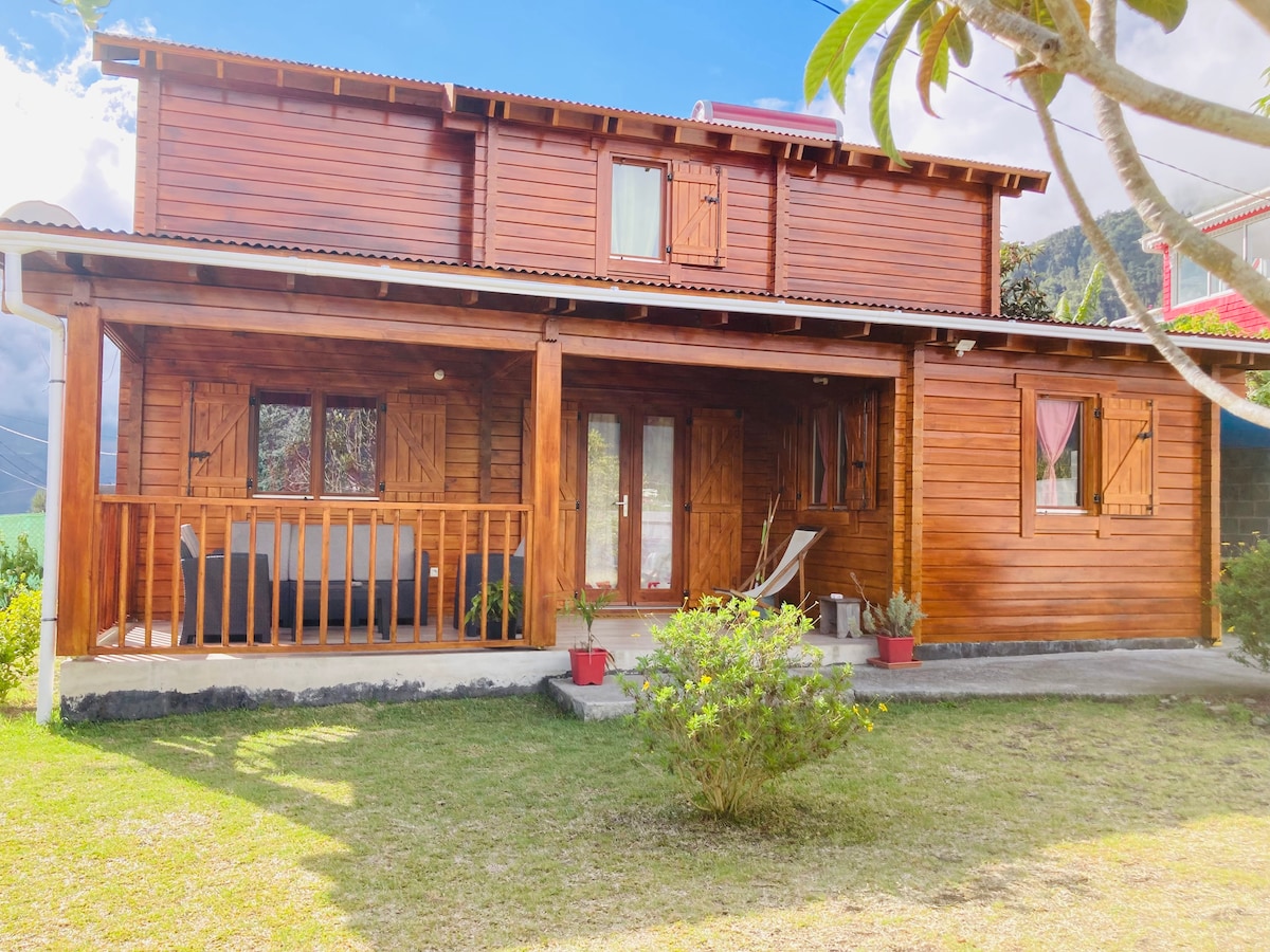Notre chalet récent de 80 m2 entouré d'un kiosque et d'un jardin fleuri est entièrement équipé et conviendra à tout type de voyageurs : famille avec enfants, entre amis ou solo. Très cosy et confortable, vous pourrez vous reposer, vous ressourcer & apprécier la superbe vue sur le Piton des neiges et le Dimitile. A 1km de toutes commodités nécessaires (pharmacie, boulangerie, superette, docteurs, banque, laverie...) pour un séjour réussi. Des questions ? Nous tâcherons d'y répondre aux mieux.