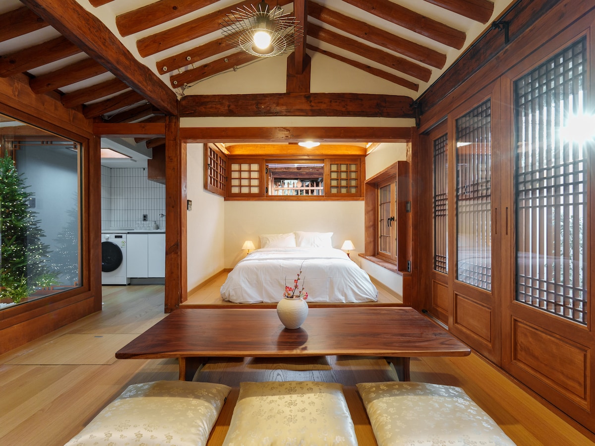Gotaek (고택) means an old hanok, typically over 100 years old, The Classic-Goteak Seochon chosen by world-renowned artist Nicolas Party for a 6-week, and Filming locationn for famous Korean movie [Architecture 101]. A private luxury Hanok hotel with an outdoor jacuzzi, exclusively for one group, in the heart of Seoul. A stunning architectural gem preserving the charm of traditional Hanok while blending modern sophistication. Its rare loft-style design features state-of-the-art amenities