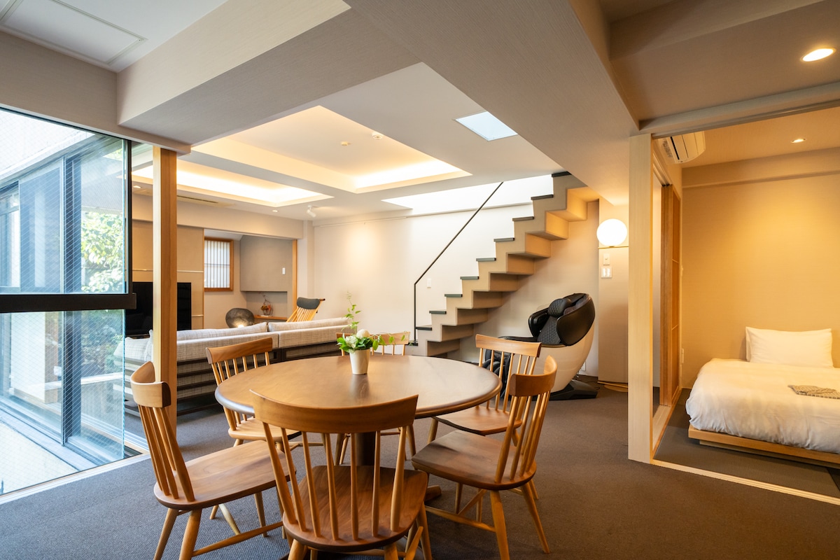 Sakura River Inn I is a traditional Japanese-style apartment located along the banks of the Takase River, preserving classic elements such as tatami. In spring, guests can enjoy cherry blossoms lining the river, while in the evening the softly illuminated scenery creates a calm and magical atmosphere. Although situated in the heart of the city and within walking distance of major sightseeing spots, the apartment offers a relaxing Kyoto experience accompanied by the gentle sound of flowing water.
