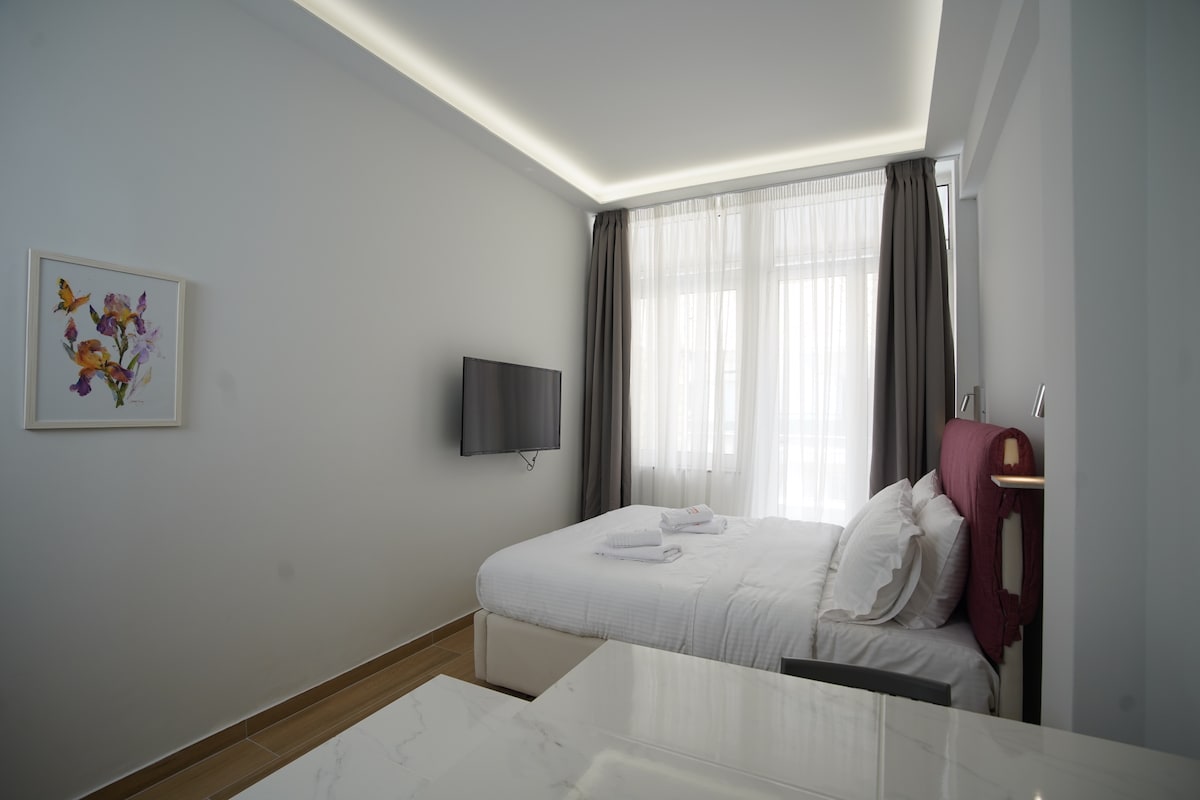 One of the most prestigious room types of the Convo 212, Deluxe Apartment is a spacious and sunny suite featuring two single or one double bed, a sofa bed, bathroom with hydro massage bathtub and separate toilet with shower, a living room, an equipped kitchenette with mini-fridge and a desk.