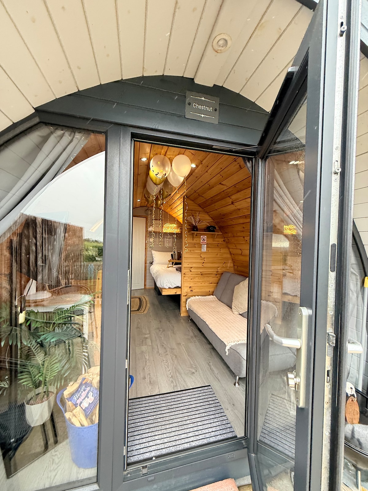 Timber Valley Pods with private hot tubs offer a peaceful countryside escape with stunning views – you can even spot the Isle of Arran on clear days. Our fully insulated and heated glamping pods are perfect year-round. Each pod sleeps two, featuring a comfy double bed, en-suite shower room, kitchenette, and complimentary tea and coffee. A sofa bed is available on request (please let us know when booking). Private parking and your own hot tub are included – relax or explore at your own pace!