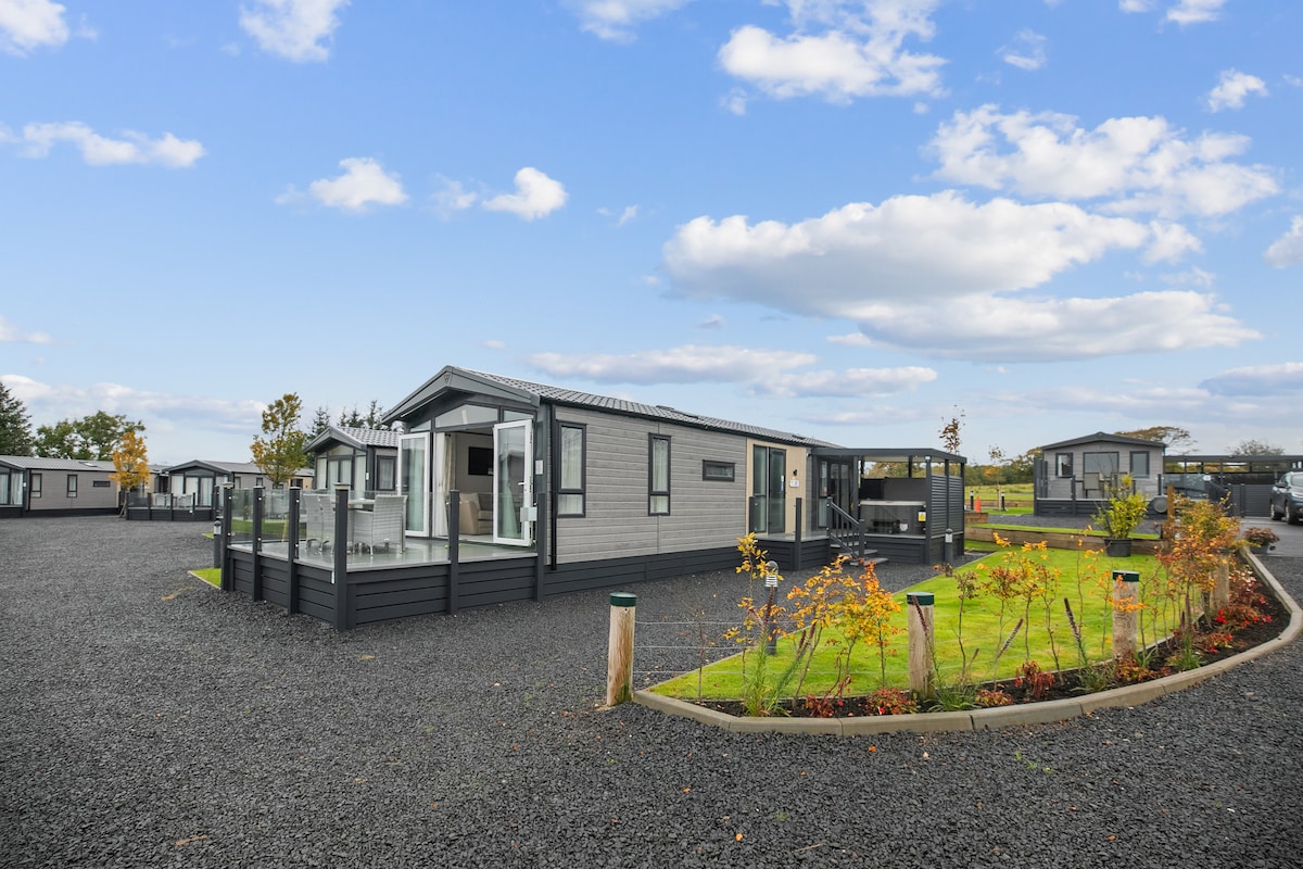 These luxury hand built designer private studios are set in the hills overlooking the Ayrshire countryside with truly breathtaking views. They have been lovingly created specifically for the most romantic of hideaways where all your cares just melt away. Each Lodge has its own fully enclosed private deck to keep you protected from the elements so you can while away in the Hot Tub enjoying each others company. Our spacious boutique lodges are open plan with a full kitchen, and media wall.