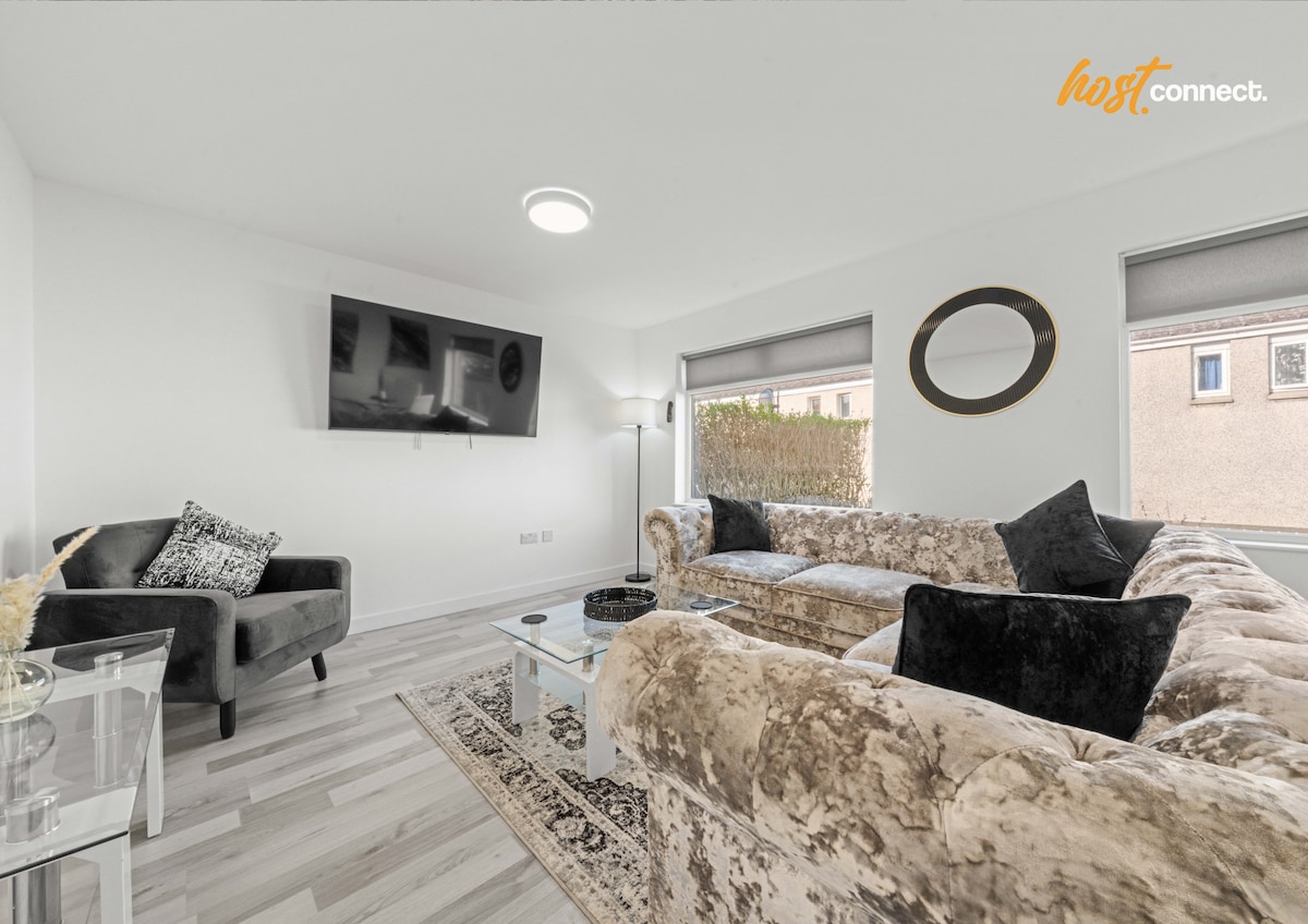 Welcome to this exceptional 4-bedroom detached home with double driveway, set on a private estate in Hamilton. Furnished to an outstanding standard throughout, this property offers refined comfort, generous space and a true executive-level stay. Add to this a large family bathroom, 2 ensuites with walk in showers and a downstairs toilet mean no queueing for the shower in here! Perfect for professionals, corporate guests, families or discerning groups who value quality, privacy and space.