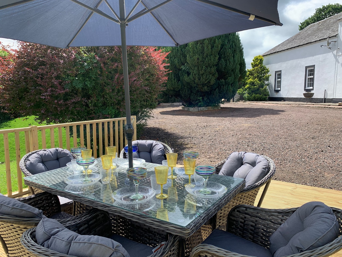 Surrounded by rolling countryside, No 2 Ramageton is a newly restored farm cottage with one bedroom and full bathroom. The open-plan living room has a full kitchen with everything needed for a short or longer stay. There is a Smart TV, blue-tooth speaker, dining and sitting area. There is a utility room with washer dryer, iron and board, safe and picnic basket and rug. Outside there is a fenced paved garden with seating and fire pit. Parking is immediately outside the garden.