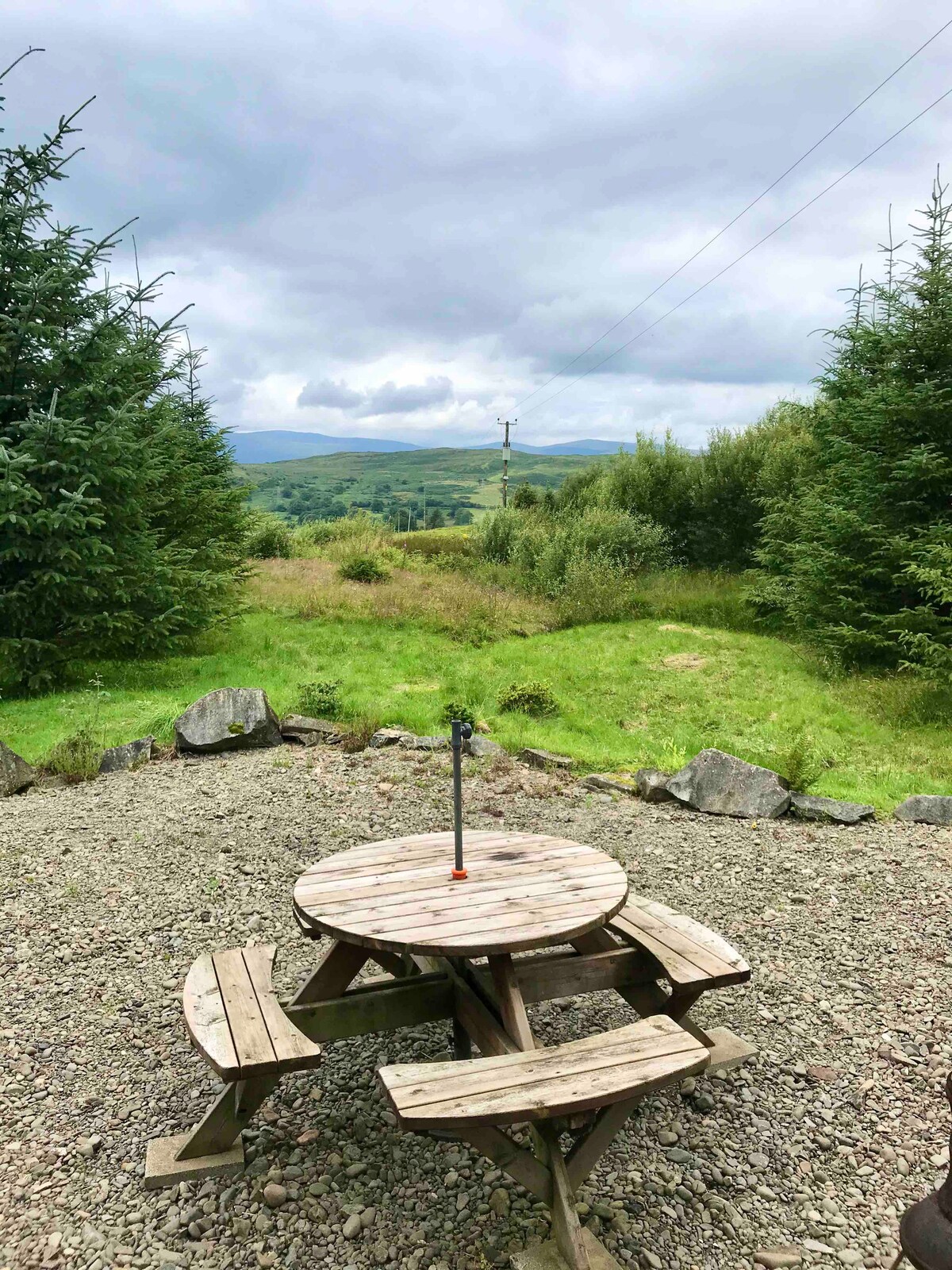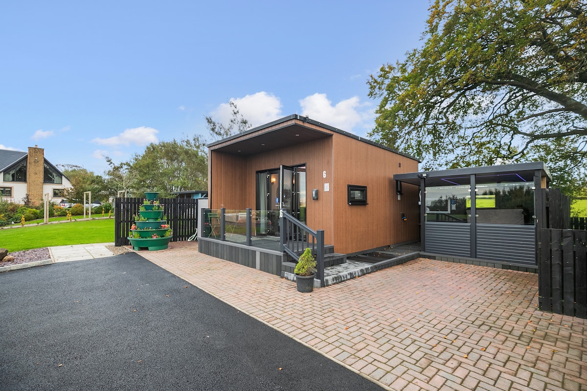 Welcome to The Wee Lodge! We are located in sunny Ayrshire amongst open skies and rolling hills that descend down into the beautiful Clyde Estuary. See more on insta @StoopidFlat_farm The Wee Lodge is a wooden one bedroom house made by the 'Wee Hoose Company'. It sits in our farmsteadings overlooking hills and fields, with Arran and the Clyde in the distance. It is surrounded by pine trees, and with the decor reminiscent of a Scandinavian lodge, has a very peaceful feeling.