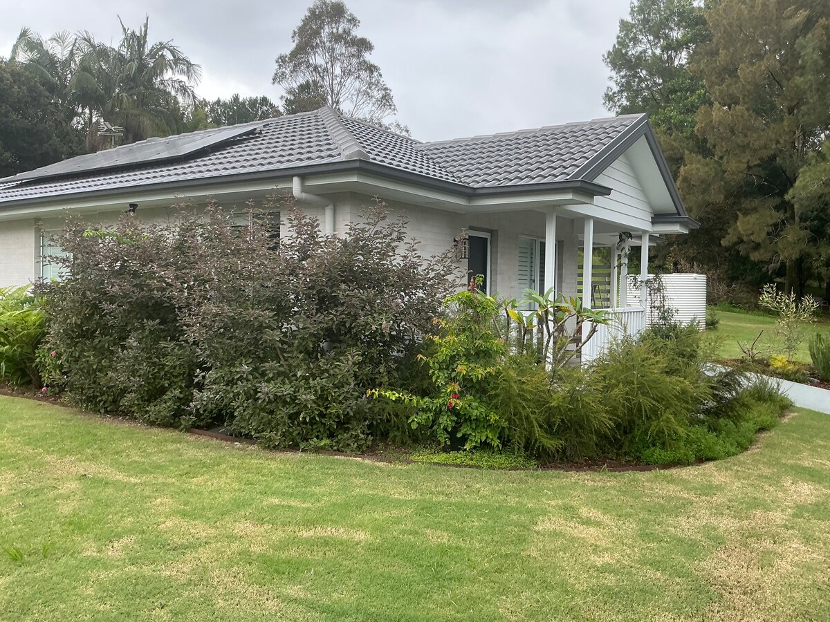 4 Bedroom tropical country pool house set on 5 acres in a quiet valley with easy access to all the areas sights and delights. 12 mins to Ballina. 20 minutes to Lennox/Bangalow/Lismore. 30 mins to Byron/Mullum/Bruns. Spacious and private entertainer with pool, outside undercover entertaining space, large open-plan living and all kingsize bedrooms. Perfect relaxed hangout spot be it a couple, a small family or group of friends. Lush tropical gardens overlooking a beautiful quiet valley.