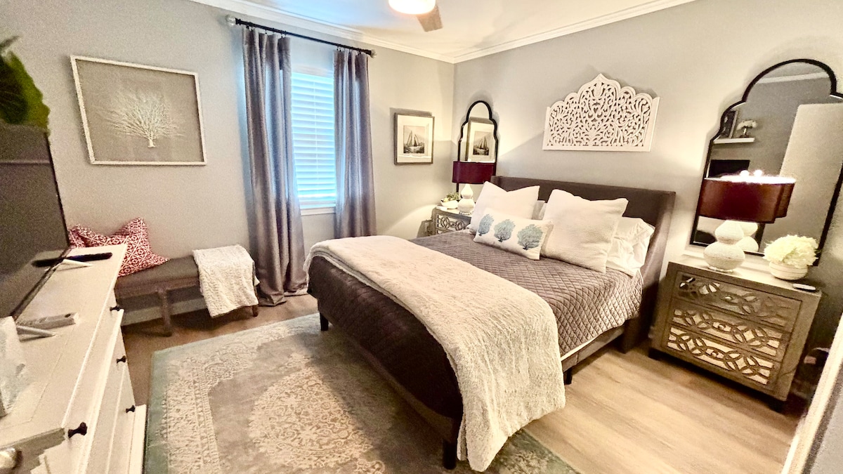 ✓Convenient location in the heart of Baton Rouge. ✓Close to LSU, Downtown, Perkins Rowe, and Mall of LA. ✓Clean and comfortable Queen bed, 48" TV, new microwave, toaster ovens, Keurig coffee, blender, cookware and silverware and free WIFI. ✓TV includes Netflix, Disney+, HBOMax, ESPN, Peacock, & DirectTV Stream all available for you! ✓Access to GE Washer/Dryer in the unit ✓Help yourself to any drinks (Soda, Coffee, Tea, Spring Water, Milk), snacks in the pantry, & fresh fruit.