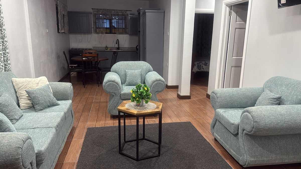 Welcome to your modern home-away-from-home! This sleek, 2-bedroom apartment offers a clean, contemporary escape in the heart of New Amsterdam. We know that comfort is king, which is why the unit is fully air-conditioned and features high-speed Wi-Fi. Your peace of mind is our priority: the property is located within a secure, gated compound. It’s the perfect blend of style, safety, and convenience.
