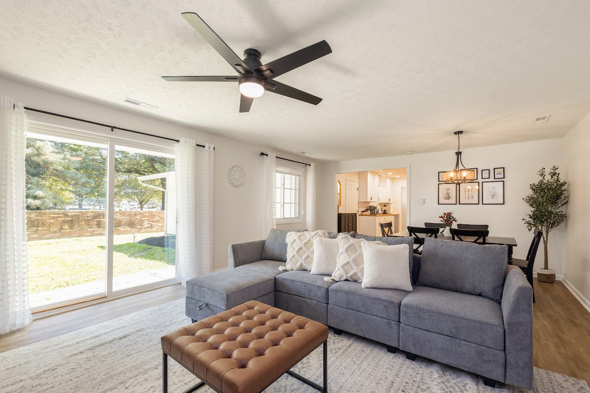 The Bexley Abode is in a prime spot: mins from attractions & highways but tucked in a quaint part of Cbus. It is home-y and conducive to a family or solo visitor. My husband & I remodeled and designed it with thought and sentiment. Highlights: ranch, open layout, cozy couch w/ 50" TV that swivels towards kitchen, gas fireplace, natural light, simple modern design finishes, new appliances, Keurig, hotel- style master bath w/ heated floor, kids room w/ toys/games, USB ports, WiFi, private parking