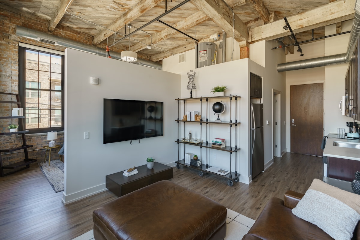 The Ellis Lofts offer a unique getaway for your time spent in Columbus! Situated in the heart of Italian village, the lofts are central to every attraction in the short North and greater Columbus area. Once the home of a local electric manufacturing company, Columbus Electrical Works, the lofts were renovated to include: - Exposed brick - Exposed timber beam framing - Modern large bathrooms - New oversized windows - Modern kitchens with stainless appliances