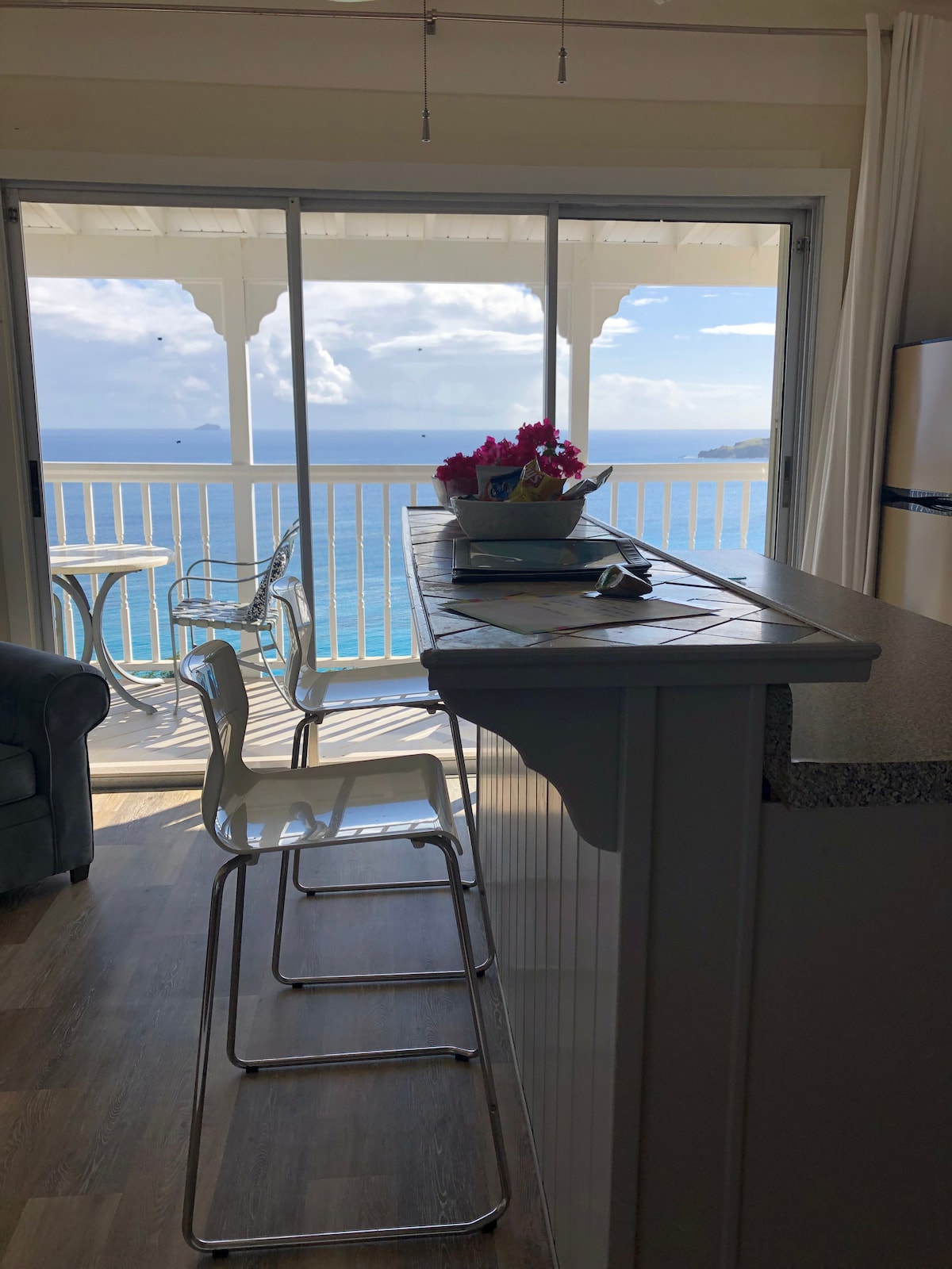 This updated and stylish condo offers incredible views of the Caribbean and neighboring St. John & BVI! We are located in Sapphire Village, nestled between Sudi’s Pool Bar & Grille and the second community pool. We are a 2-minute walk to the marina and another few steps to beautiful Sapphire Beach, which offers 3 restaurants, bars, boutique and coffee shop. Red Hook is a quick drive for dining, entertainment and the ferry to St. John/BVI. If you need a car during your stay, please inquire!
