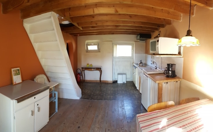 Een oude boerderij, de schuren werden omgebouwd tot gastenverblijf. Rust en privacy. Een mini dakloft, op de eerste verdieping. Een robuust, ongedwongen, sfeervol nest voor 1, 2 of 3 avonturiers, sporters, creatievelingen, scout-spirits, wandelaars, fietsers, natuurliefhebbers, of doorreizers. Ontsnap aan de massa, gooi de wandelschoenen in de hoek, de fiets in het fietskot, of nestel je na het werk, maak een plan voor morgen en geniet van de rust. Klein en groot terras, vuurkorf, bbq.