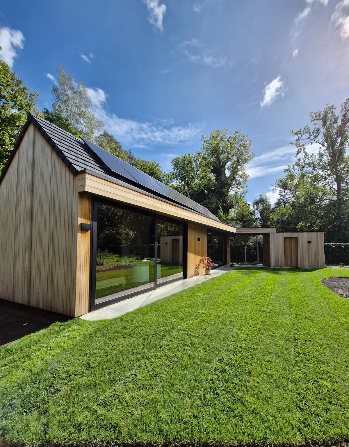 This cottage is surrounded by woods. It's the ideal place to unwind and enjoy nature. It's fully equipped with every luxury, and you can enjoy a cup of coffee or tea outside on the beautiful terrace with a hot tub. In the bathroom, you'll find a wonderful bath to unwind. The cottage is nestled in a wooded area, and we have similar properties adjacent to it, but each has its own private woodland. The minimum age for our guests is 25.