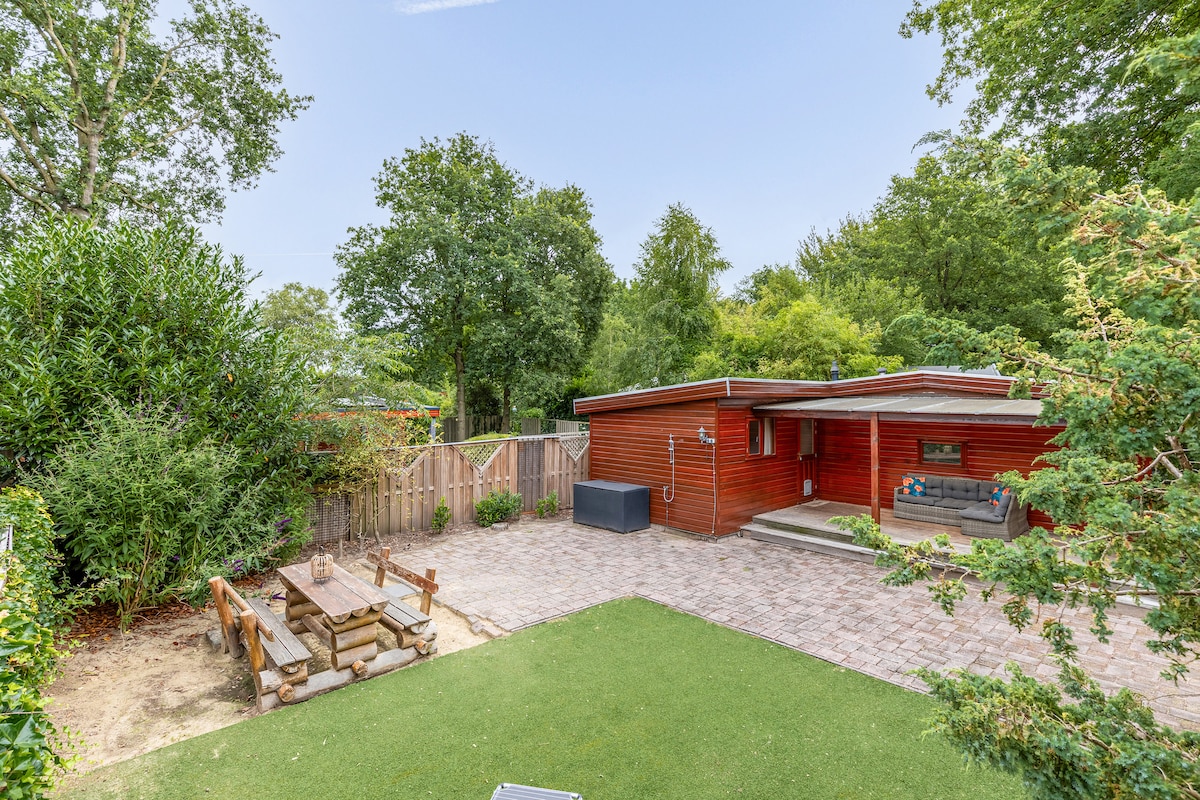 豪华度假屋,配备热水浴缸,毗邻水域和森林。